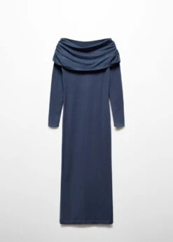 tissu en maille fine, coupe longue, ajuste, epaules denudees, manches longues, sans fermeture, detail drapeComposition: 52% viscose,29% polyester,19% polyamide