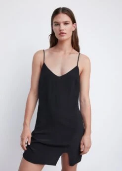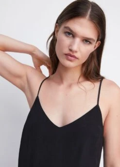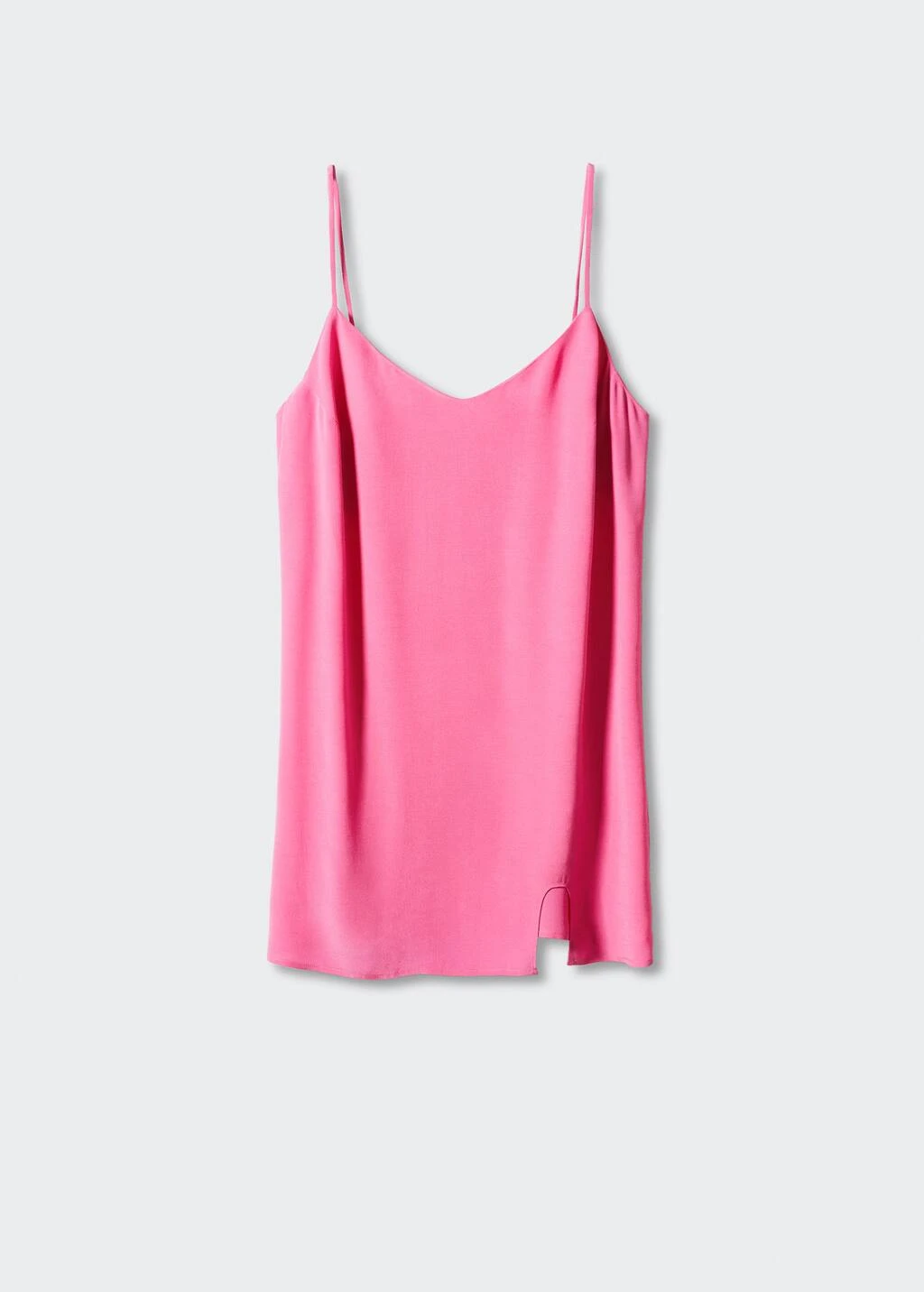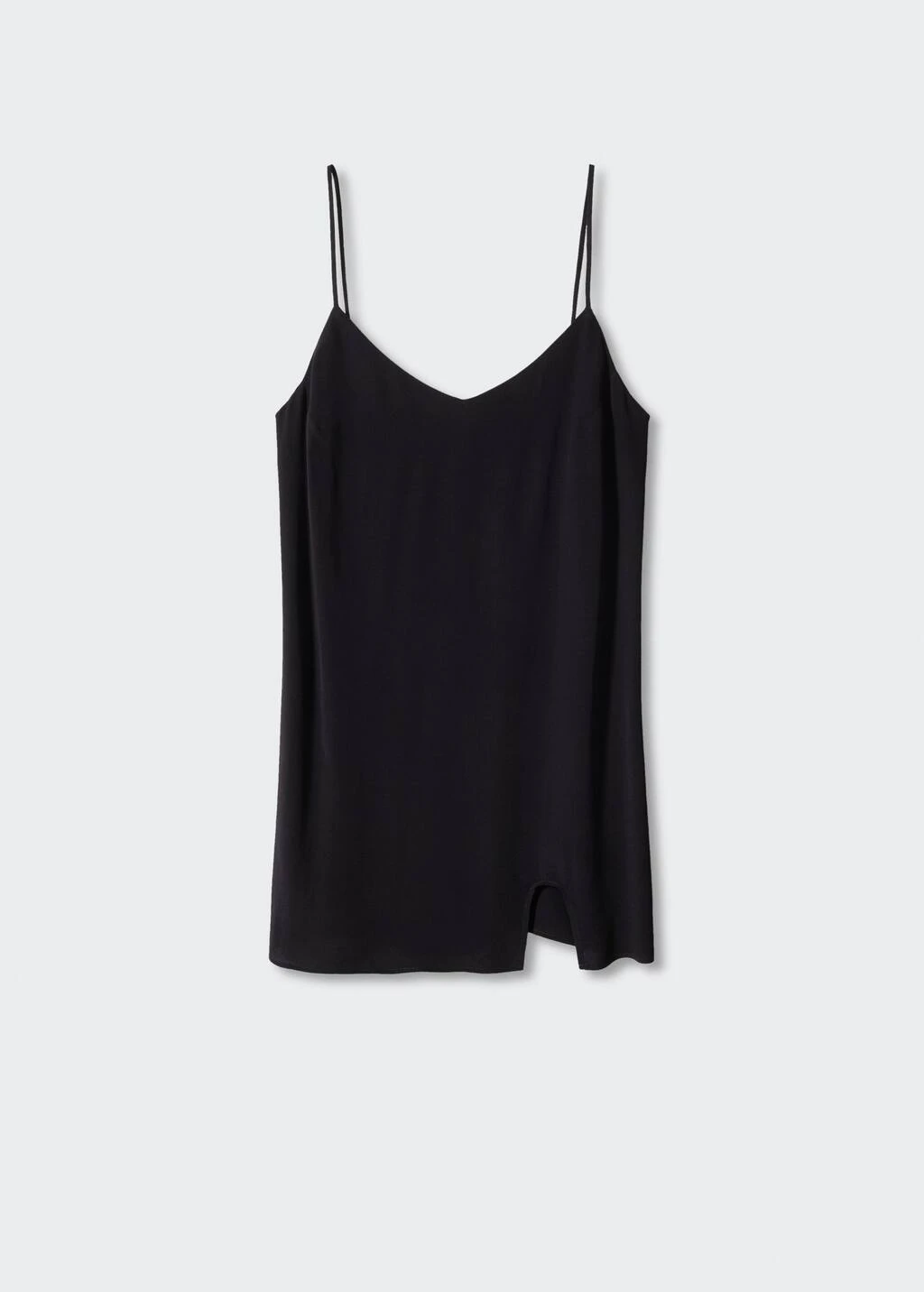 tissu fluide, droit, coupe courte, col echancre, bretelles fines, sans fermeture, fente lateraleComposition: 100% viscose