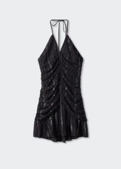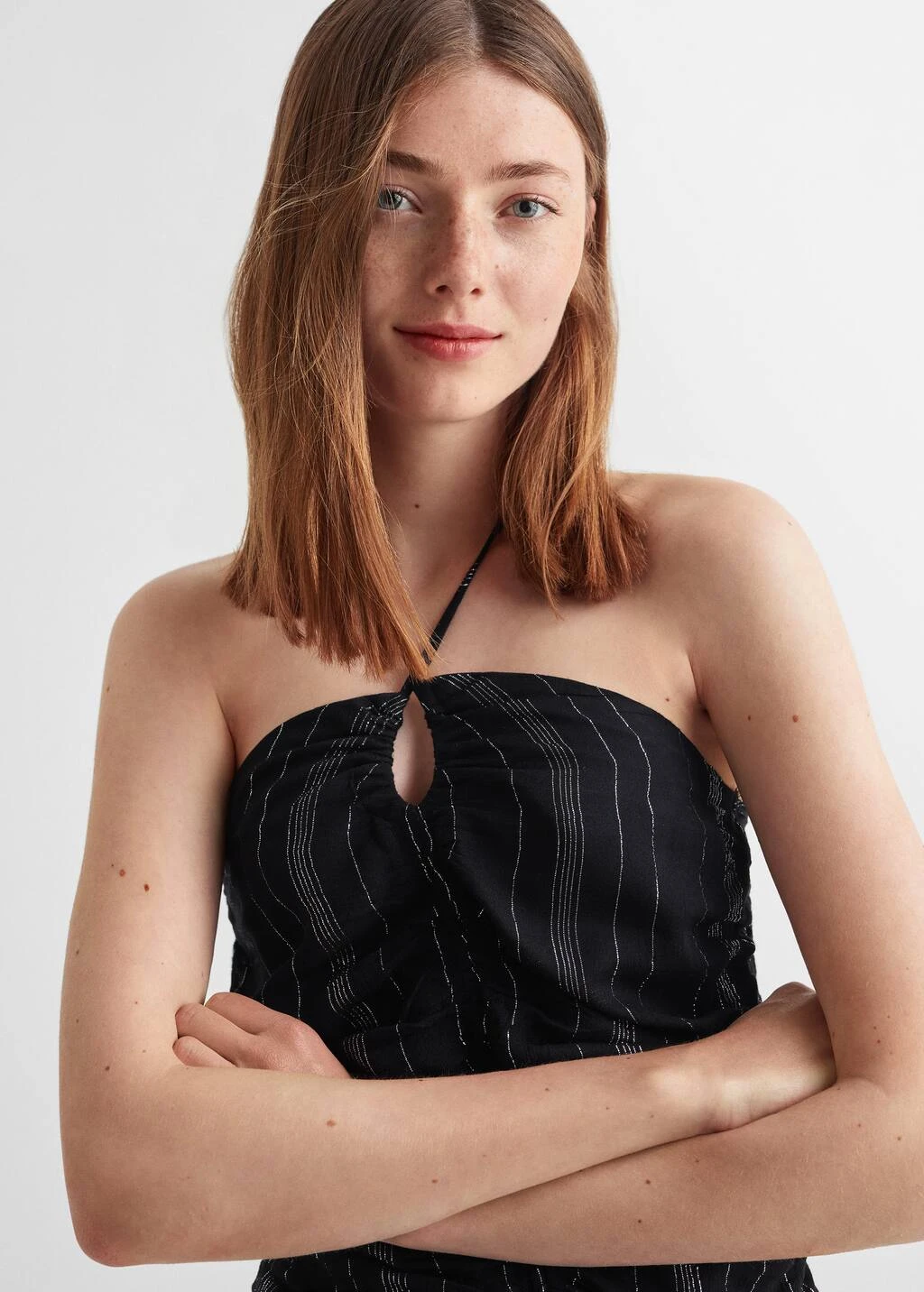 coupe courte, detail brillant, base volantee, col en v, sans manches, fermeture au niveau du colComposition: 98% viscose,2% metal. Doublure: 100% coton