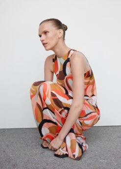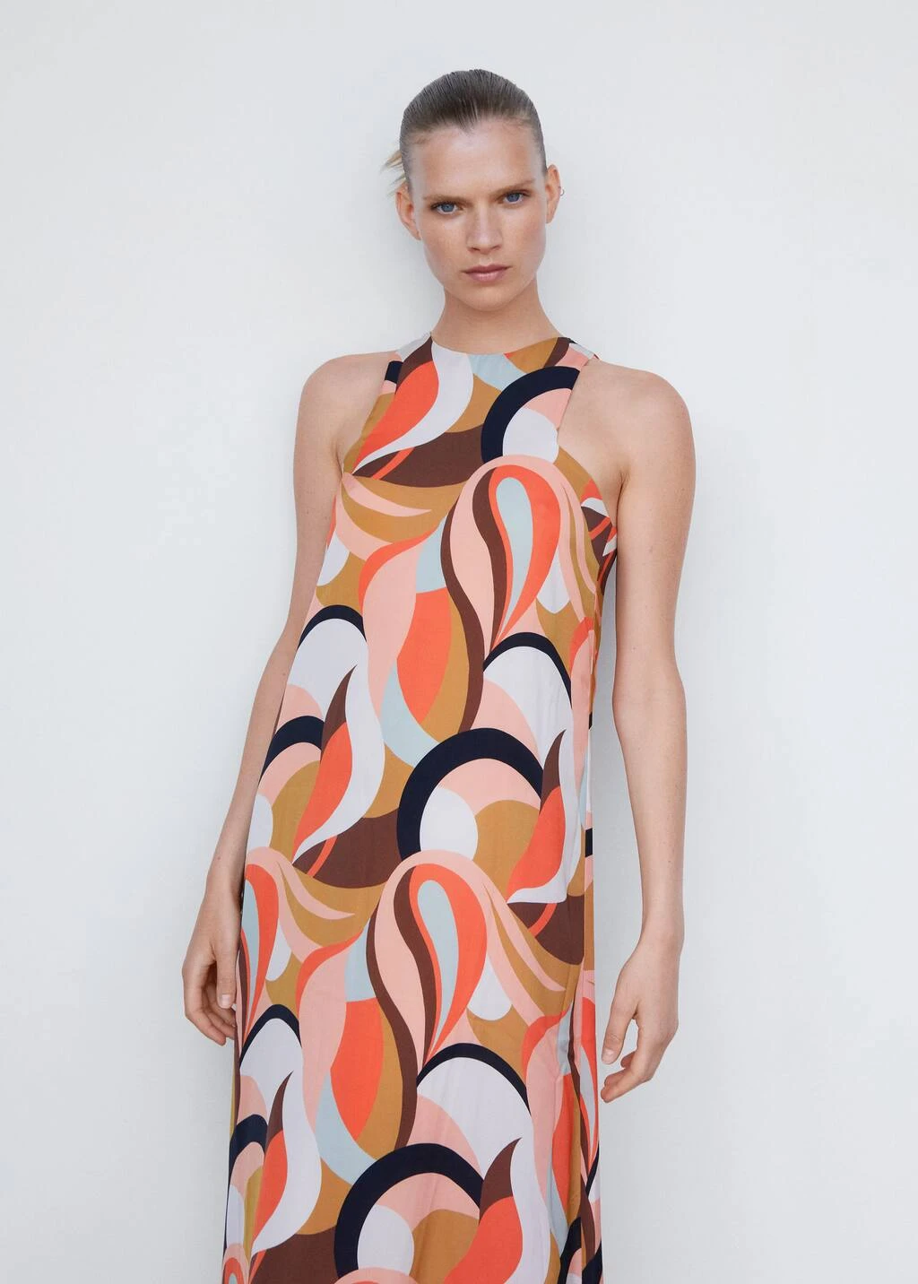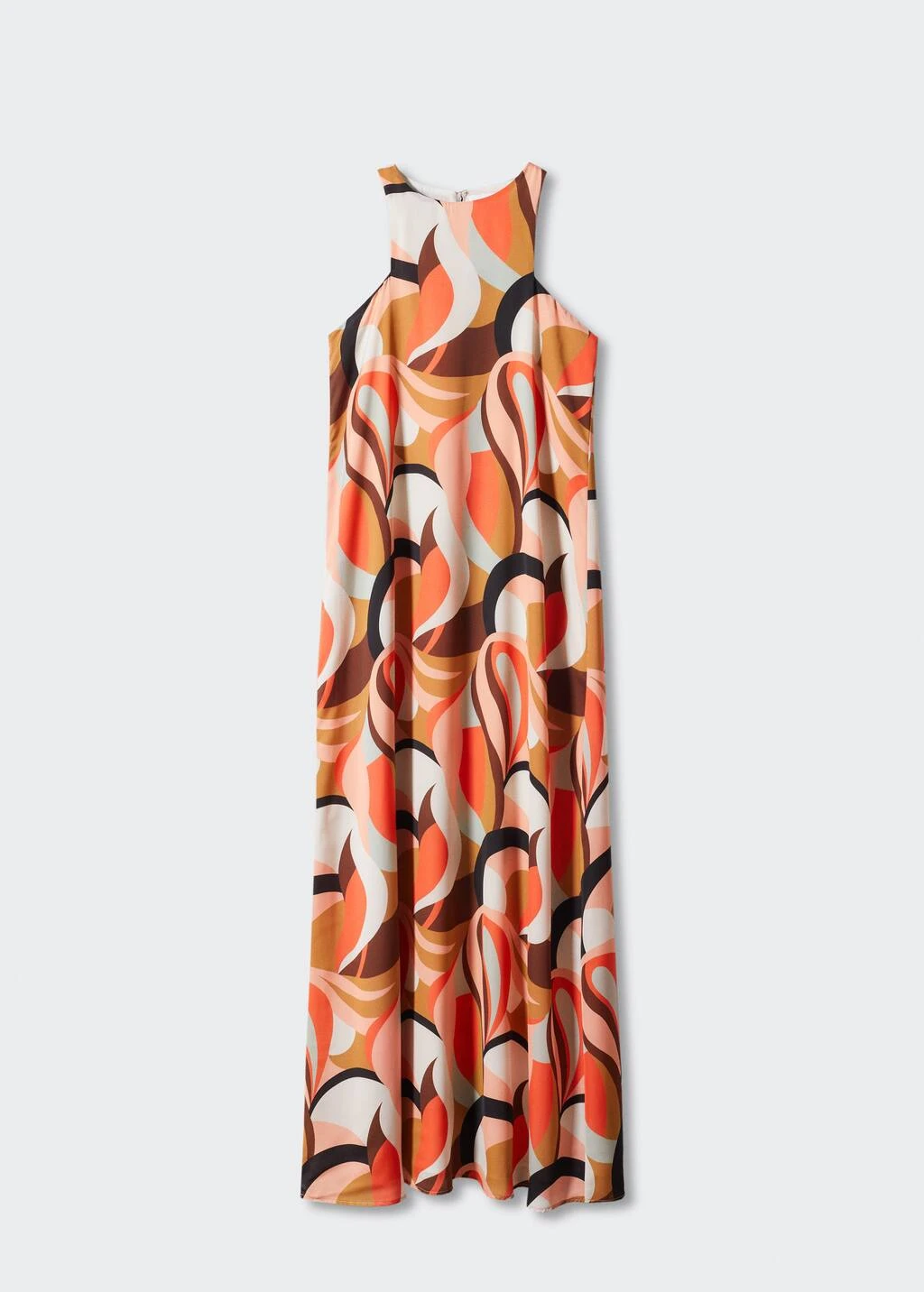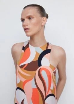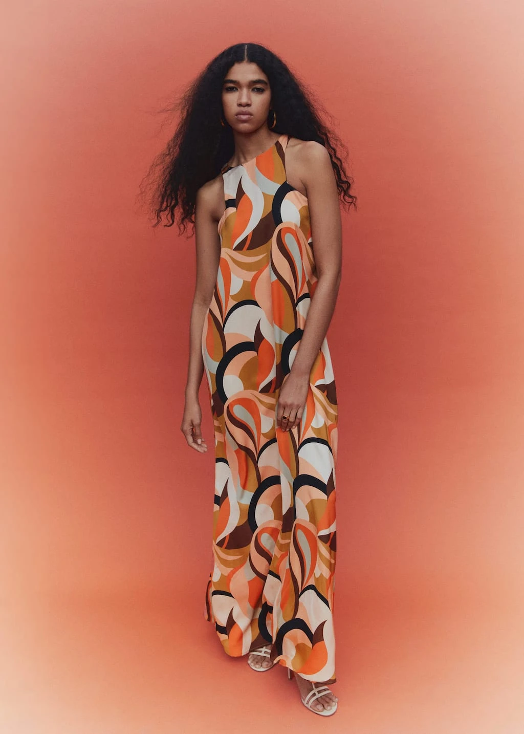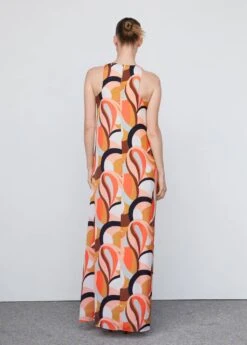 tissu fluide, coupe droite, coupe longue, imprime, emmanchures americaines, sans manches, ouverture dans le dos avec bouton, collection fetes et ceremoniesComposition: 70% polyester,30% polyester recyclé. Doublure: 100% polyester