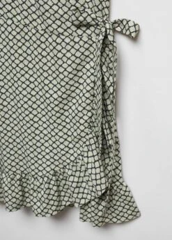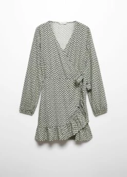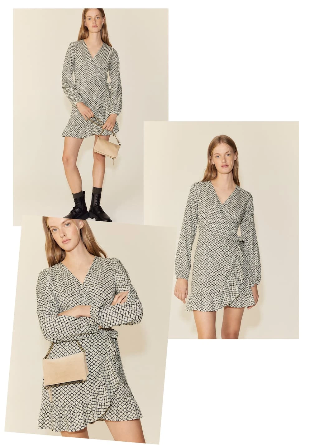 coupe courte, details volantes, col en v, manches longues, fermeture a cordonComposition: 100% viscose