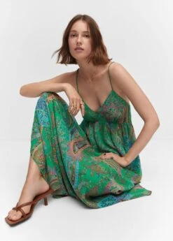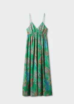 tissu fluide, tissu texture, evase, coupe longue, imprime paisley, col en v, bretelles fines, dos nu, lien a nouer au dos, collection fetes et ceremoniesComposition: 100% polyester. Doublure: 100% polyester. Finition: 100% bois