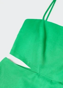 tissu en lin melange, coupe droite, coupe midi, imprime floral, col droit, bretelles fines, fermeture eclair a l’arriere, fentes laterales, la couleur verte est une exclusivite en ligneComposition: 55% lin,45% viscose. Doublure: 100% coton