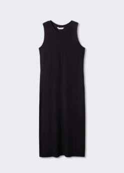 tissu en coton, coupe droite, coupe midi, fente laterale en bas, col rond, sans manches, le mannequin mesure 172 cm et porte une taille mComposition: 47% coton,47% modal,6% elasthanne