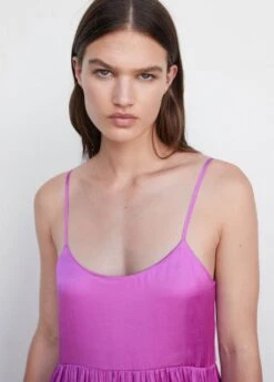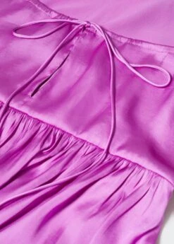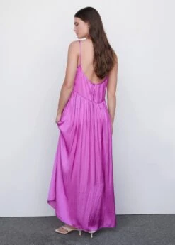 tissu satine, tissu fluide, coupe droite, coupe longue, col rond, bretelles fines ajustables, ouverture au dos, lien a nouer au dos, disponible plus, collection fetes et ceremoniesComposition: 100% polyester. Doublure: 100% polyester