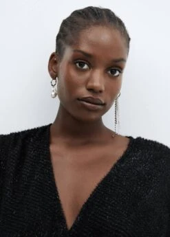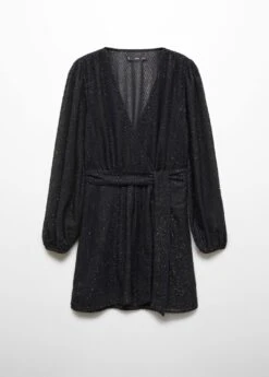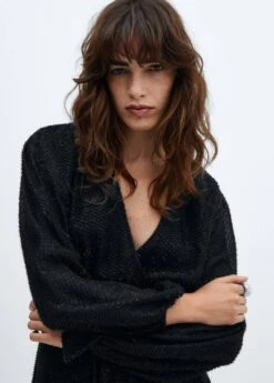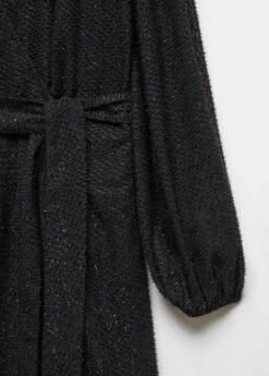 tissu fluide, coupe courte, coupe droite, croise, col en v, manches longues bouffantes, ruban a la taille avec fermeture a nœud, details en lurex, doublure, disponible plus.Composition: 100% polyester. Doublure: 100% polyester