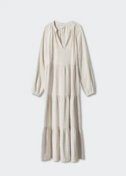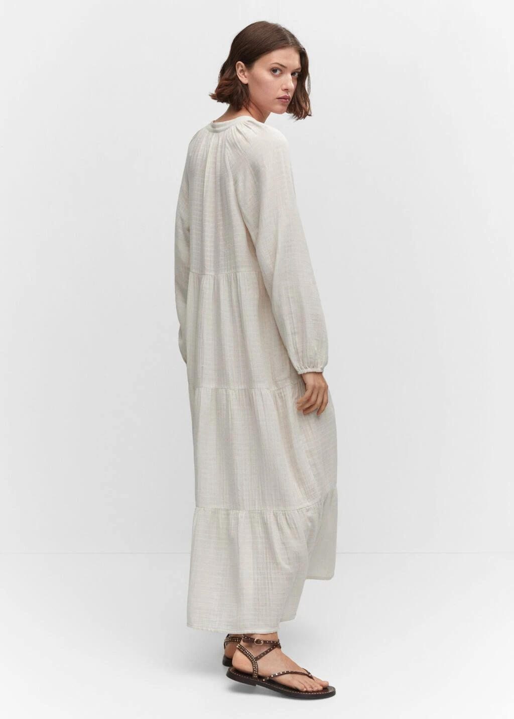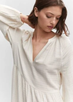 tissu 100Â % coton, droit, coupe maxi, col en v, manches longues bouffantes, poignets elastiques, sans fermeture, bas evaseComposition: 100% coton