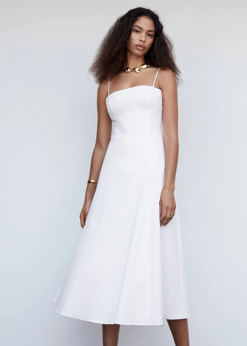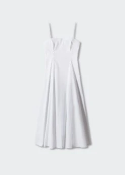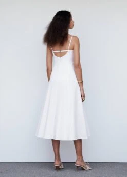 tissu en coton, evase, coupe midi, col droit, bretelles fines, encolure au dos, fermeture metallique a l’arriere, fermeture eclair a l’arriere, doublure, collection fetes et ceremoniesComposition: 82% coton,15% polyamide,3% elasthanne. Doublure: 100% coton. Tulle: 100% polyester