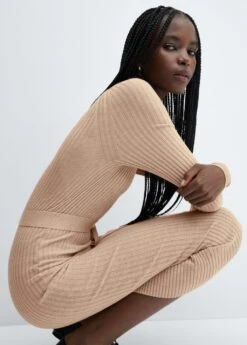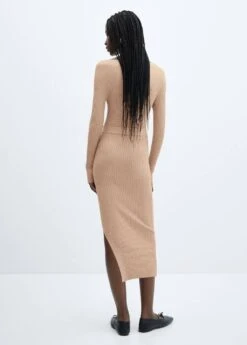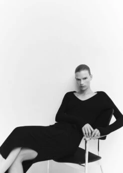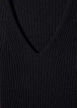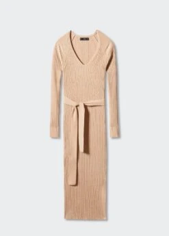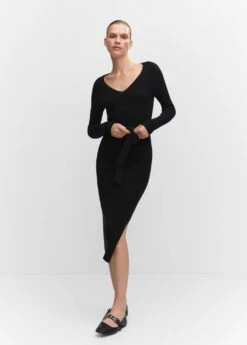 tissu en maille, ajuste, coupe midi, col en v, manches longues, sans fermeture, nĆud amovible a la taille, fente lateraleComposition: 49% viscose,29% polyester,22% polyamide