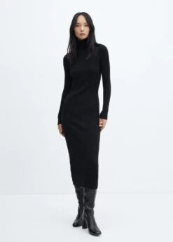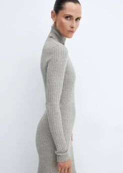 tissu en maille fine, coupe midi, ajuste, cotele, col montant, manches longues, sans fermetureComposition: 50% viscose,28% polyester,22% polyamide