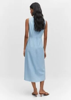 tissu 100 % coton, coupe droite, coupe midi, col en v, bretelles larges, fermeture eclair a l’arriere, detail nœud, ouverture en bas a l’avantComposition: 100% coton