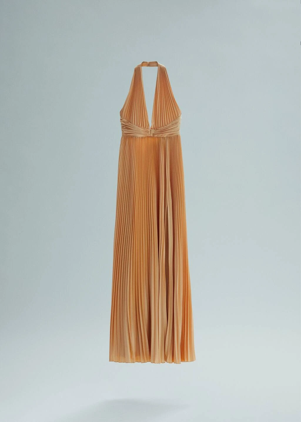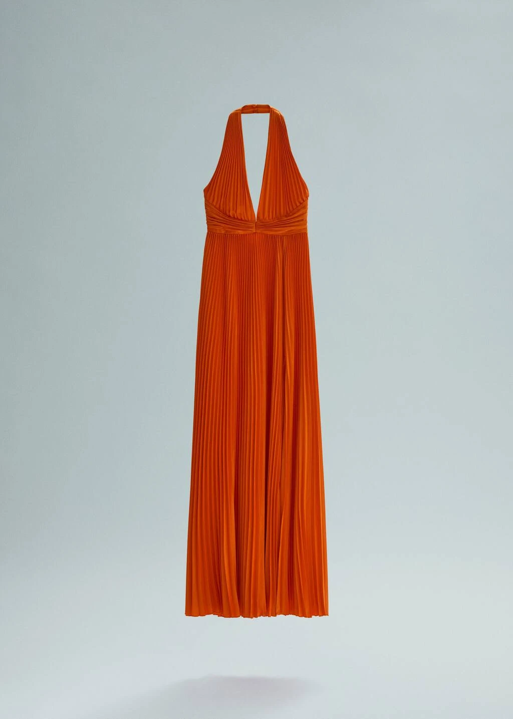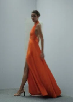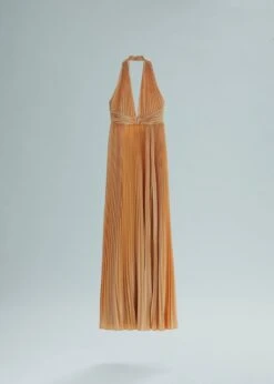 tissu satine, design plisse, evase, coupe longue, col en v, bretelles larges, bouton de fermeture a l’arriere, fermeture eclair a l’arriere, doublure, collection fetes et ceremonies, capsule : une collection de vetements en edition limitee, fabriques avec les meilleurs tissus et le plus grand soin en matiere de patrons, afin d’obtenir les meilleures finitions. cette collection exclusive est concue pour les evenements et les occasions les plus chics.Composition: 100% polyester. Doublure: 100% polyester