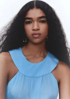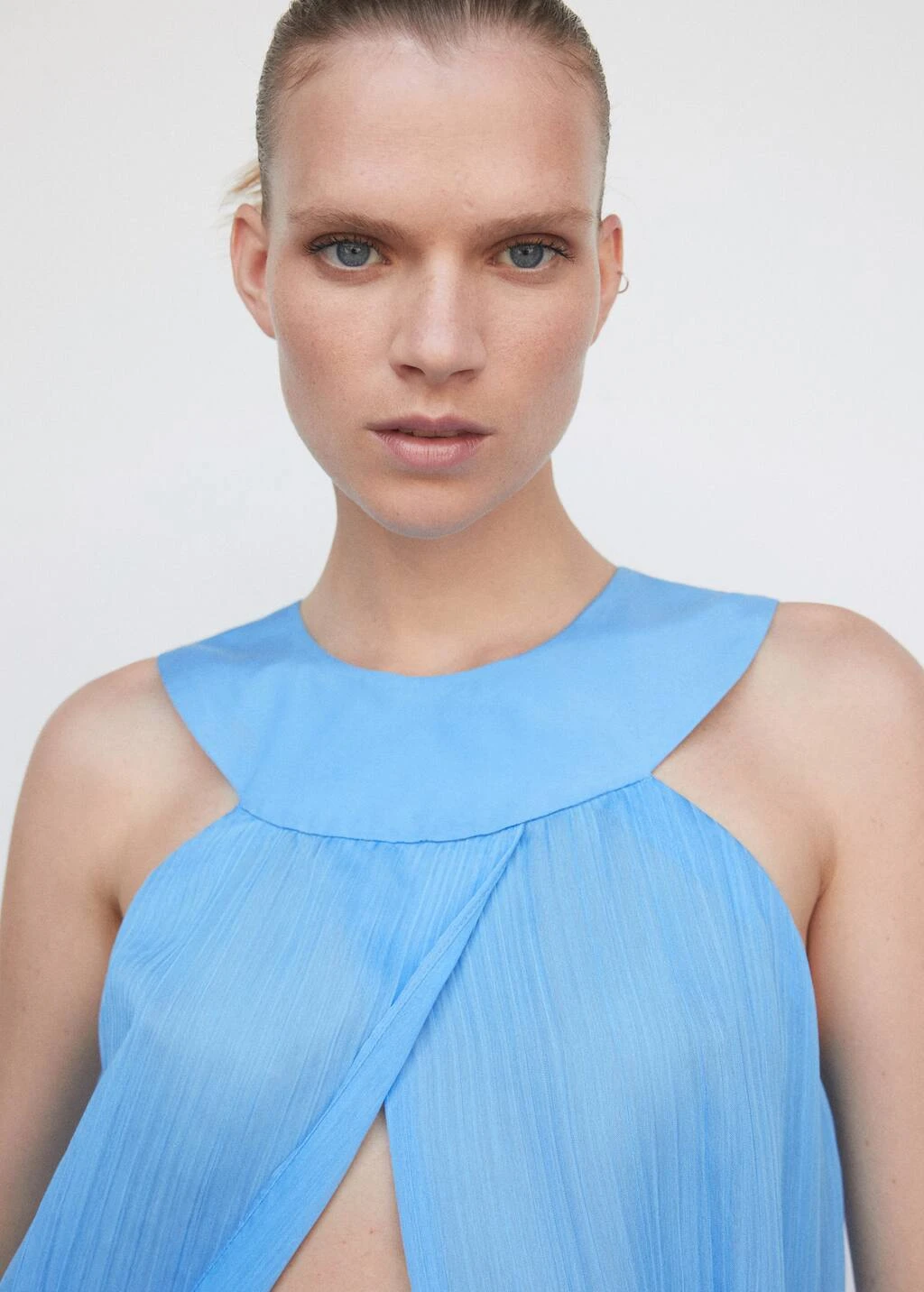 design plisse, coupe droite, coupe longue, emmanchures americaines, sans manches, fermeture eclair a l’arriere, ouverture sur le devant, total look, collection fetes et ceremoniesComposition: 60% polyester,40% polyester recyclé. Col: 55% viscose,45% modal