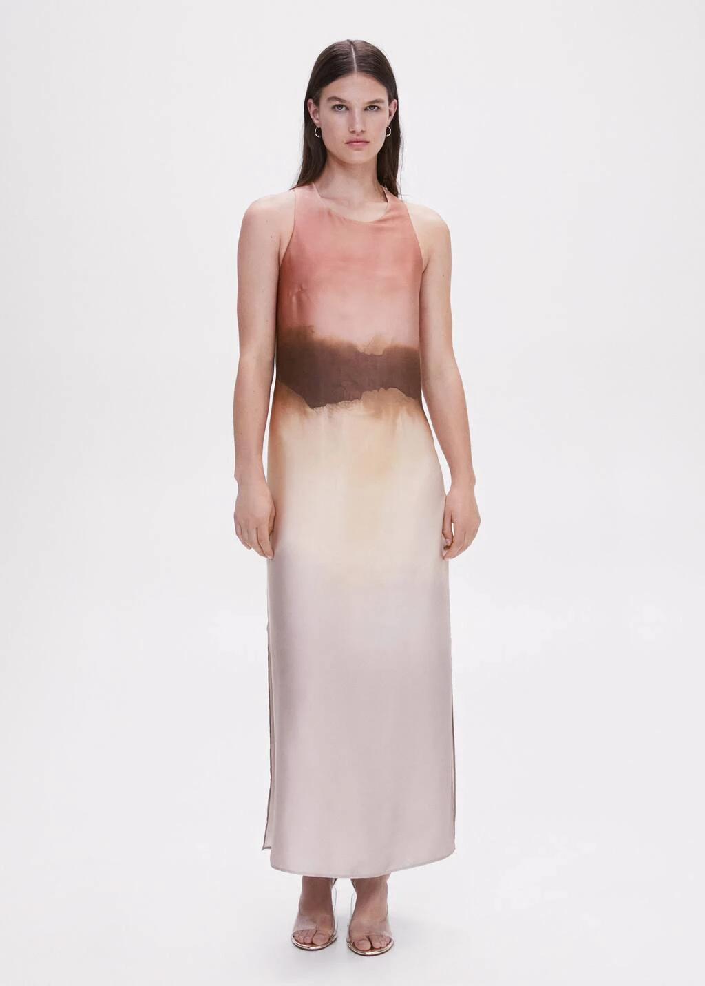collection selection, tissu satine, coupe droite, coupe longue, disponible en uni ou imprime, col rond, bretelles larges croisees dans le dos, fermeture eclair invisible sur le cote, collection fetes et ceremonies, une capsule de pieces raffinees, fabriquees a partir de materiaux de qualite pour creer une garde-robe feminine et contemporaine pour les grandes occasionsCOMPOSITION:100% POLYESTER. DOUBLURE:100% POLYESTER