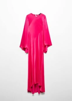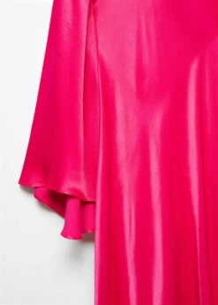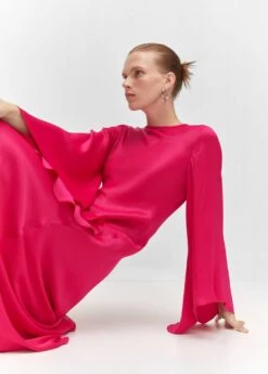 tissu satine, tissu fluide, evase, coupe longue, col rond, manches longues cloche, lien a nouer au dos, collection fetes et ceremoniesComposition: 100% viscose