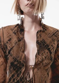 tissu fluide, tissu en gaze, ajuste, coupe longue, imprime abstrait, col echancre, fente laterale, fermeture a nĆuds sur le devant, fermeture eclair a l’arriere, collection fetes et ceremoniesComposition: 100% polyester