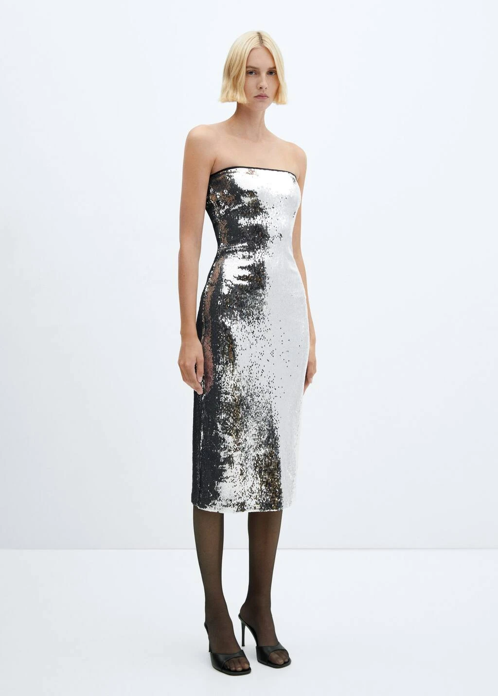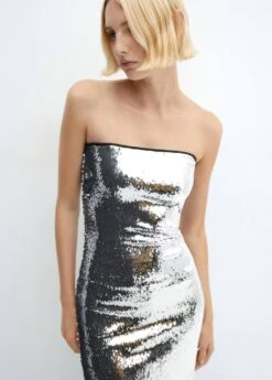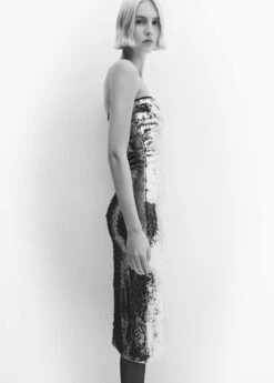 tissu en sequins, coupe midi, ajuste, bustier, sans manches, fermeture eclair invisible sur le cote, bas fendu a l’arriere, doublure, collection fetes et ceremoniesComposition: 96% polyester,4% elasthanne. Doublure: 100% polyester. Sequin: 100% poly(tĂ©rĂ©phtalate d’Ă©thylĂšne)