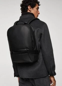 details similicuir, fabrique a partir de materiaux recycles, compartiment principal zippe, poche interieure pour appareils electroniques d’une largeur maximale de 25 cm, poche moyenne en relief a fermeture eclair, dos et anses matelasses pour plus de confort, bretelles reglables, comporte une poignee fabriquee dans le meme tissu, doublure en polyesterComposition: 90% polyester recyclé,10% polyuréthane recyclé. Doublure: 100% polyester