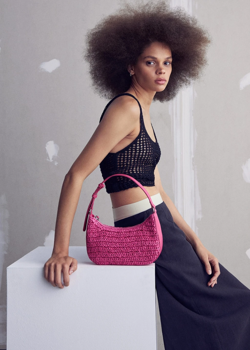 taille moyenne, tissu en fibre naturelle, anse courte, anse reglable, poche interieure, fermeture eclair, doublureComposition: 60% papier de paille,40% polyurethane. Doublure: 100% polyester