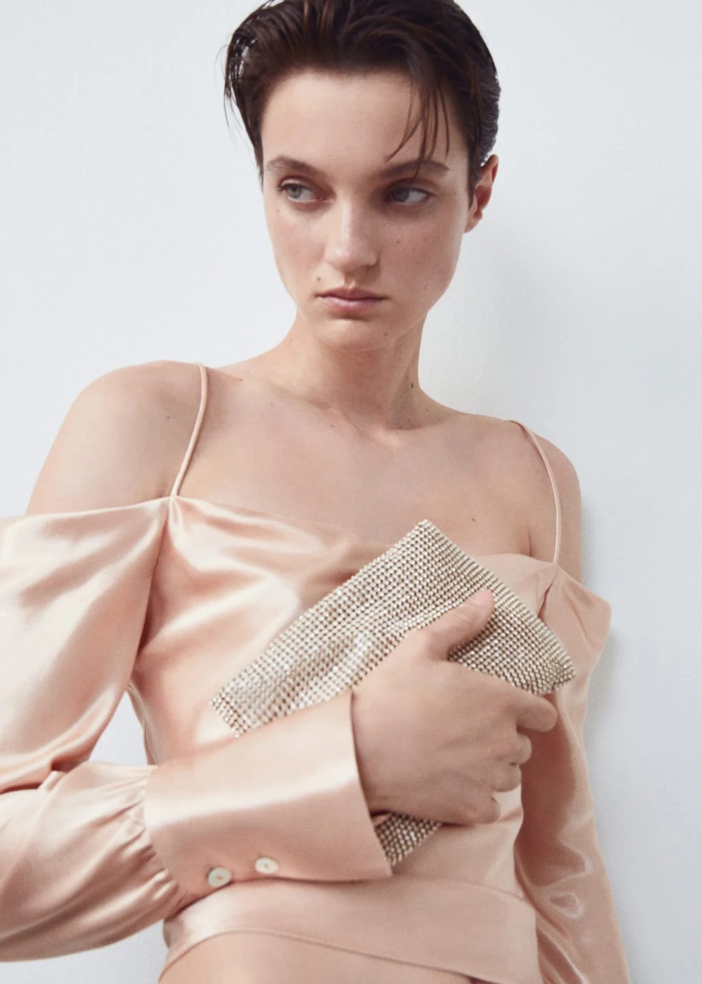 motif en strass, petite taille, anse longue en chaine, fermoir metallique aimante, doublure, collection fetes et ceremoniesComposition: 55% aluminium,45% verre. Doublure: 100% polyester. Finitions: 100% metal