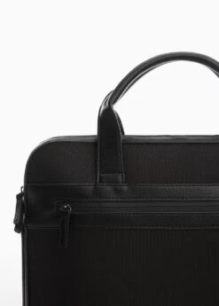 fabrique a partir de materiaux recycles, similicuir, bande pour faciliter le transport avec une valise de type trolley, compartiment principal zippe, compartiment secondaire pour les appareils electroniques avec fermeture velcro et fermeture eclair dissimulee, bandouliere amovible et reglable , deux poignees courtes, doublure en polyesterComposition: 70% polyester recyclé,30% polyurethane. Doublure: 100% polyester