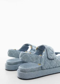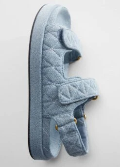 tissu de coton melange, motif jean, matelasse, brides de fermeture a velcro, bout rond, flatCarre: 65% coton,35% polyester. Doublure: 100% polyurethane. Ornement: 100% zinc. Semelle: 65% coton,35% polyester. Semelle: 100% caoutchouc thermoplastique. Fixation semelle: 100% collée