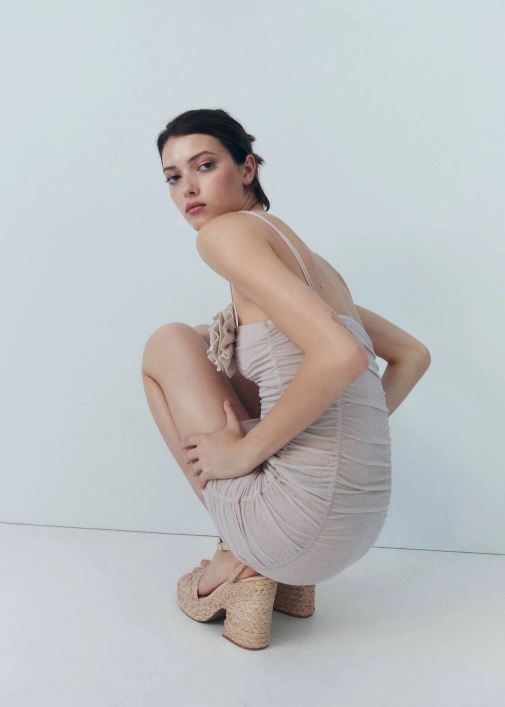 motif tresse, tissu en raphia, plateforme, bout rond, fermeture a boucle, bride de cheville, talon de 10 cmCarre: 95% rafia,5% polyurethane. Doublure: 100% polyurethane. Semelle: 100% polyurethane. Semelle: 100% thermoplastique. Fixation semelle: 100% collée