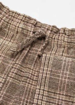 imprime carreaux, coupe courte, elastique pour cheveux, taille elastique, deux poches, fermeture a cordonComposition: 77% polyester,9% acrylique,6% laine,4% polyamide,3% viscose,1% coton. Doublure: 100% polyester
