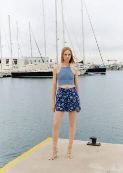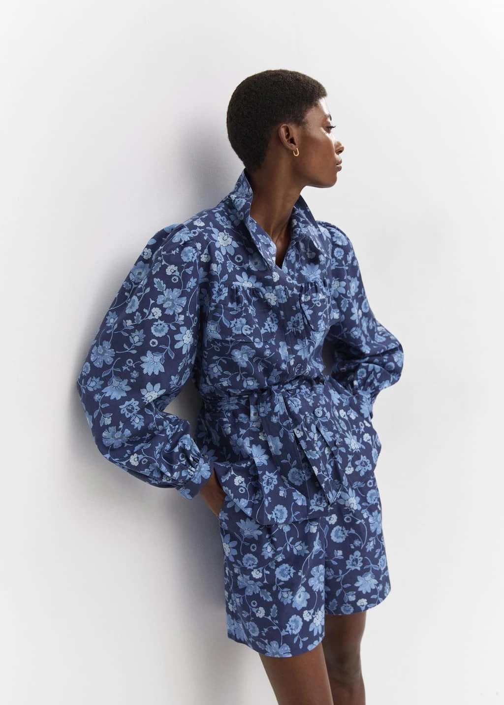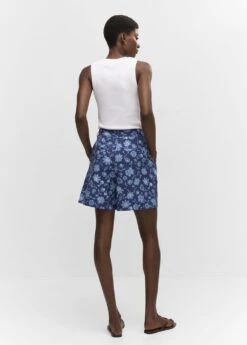tissu de coton et lin melange, coupe droite, coupe courte, taille haute, imprime floral, passants pour la ceinture, poches laterales, fermeture eclair avec crochet et bouton dissimules, total lookComposition: 88% coton,12% lin