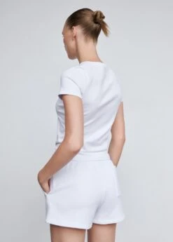 tissu de coton et lyocell melanges, coupe courte, coupe droite, taille elastique, deux poches laterales, ce vetement est fabrique en pyratex®, un tissu innovant produit au portugal a partir d’un melange d’algues marines, de cellulose de bois et de coton. les algues sont recoltees selon un processus controle qui n’extrait que la partie de la plante qui peut etre regeneree. tous les benefices seront reverses au laboratoire de posidonies de l’association vellmari, un projet de conservation qui restaure l’ecosysteme mediterraneen. de la mer, pour la mer.Composition: 80% coton,20% lyocell. Poche: 80% coton,20% lyocell