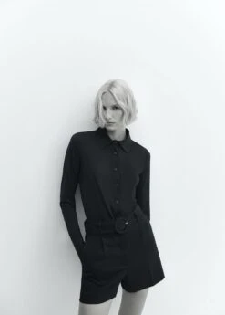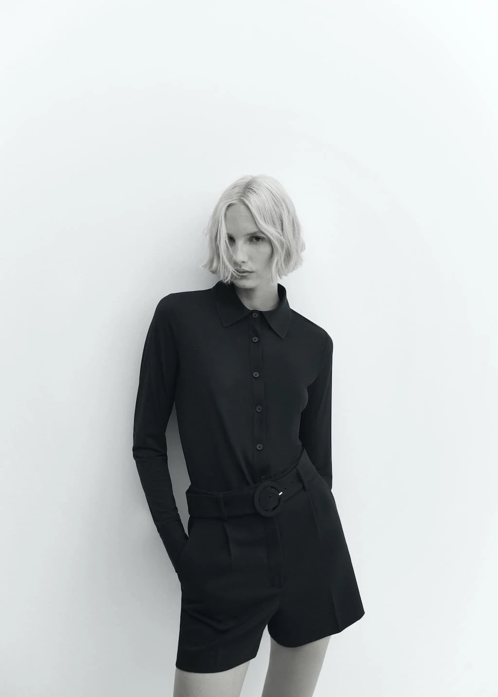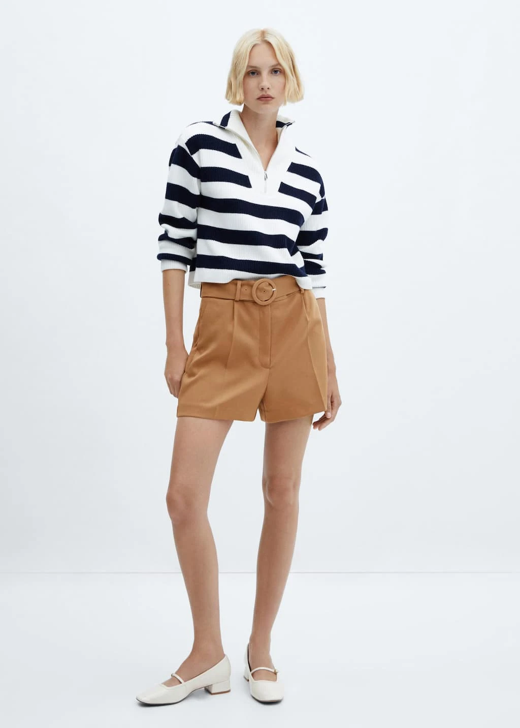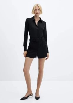 tissu fluide, coupe paper bag, coupe courte, taille haute, passants pour la ceinture, poches laterales, ceinture amovible, fermeture eclair avec crochet et bouton dissimules, pincesComposition: 76% polyester,21% viscose,3% elasthanne. Doublure: 100% polyester