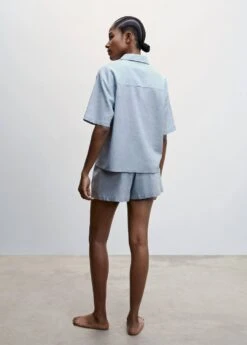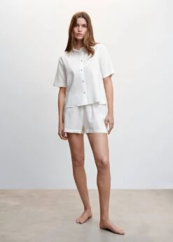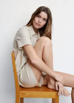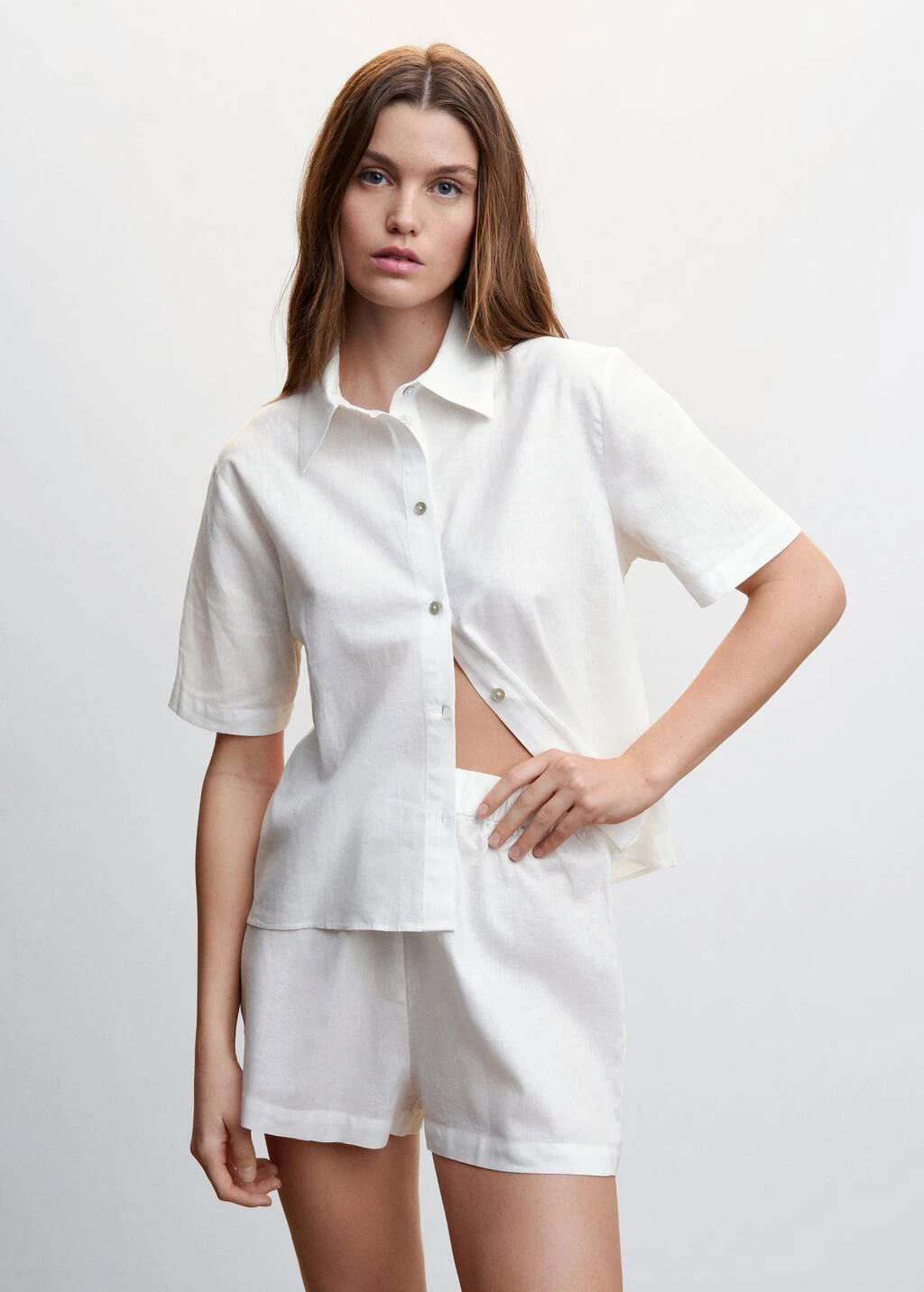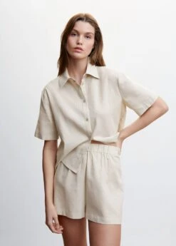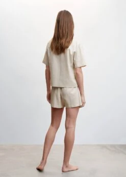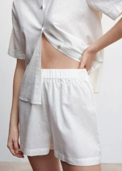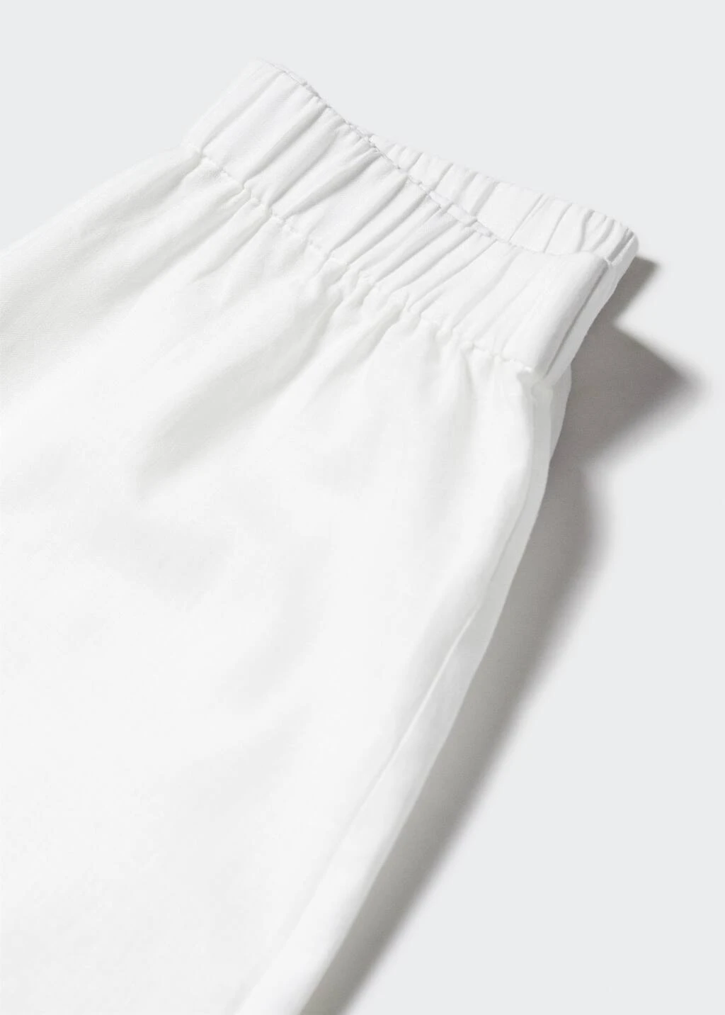 100Â % lin, tissu fluide, coupe droite, coupe courte, taille elastiquee, sans fermetureCOMPOSITION:55% LIN,45% VISCOSE