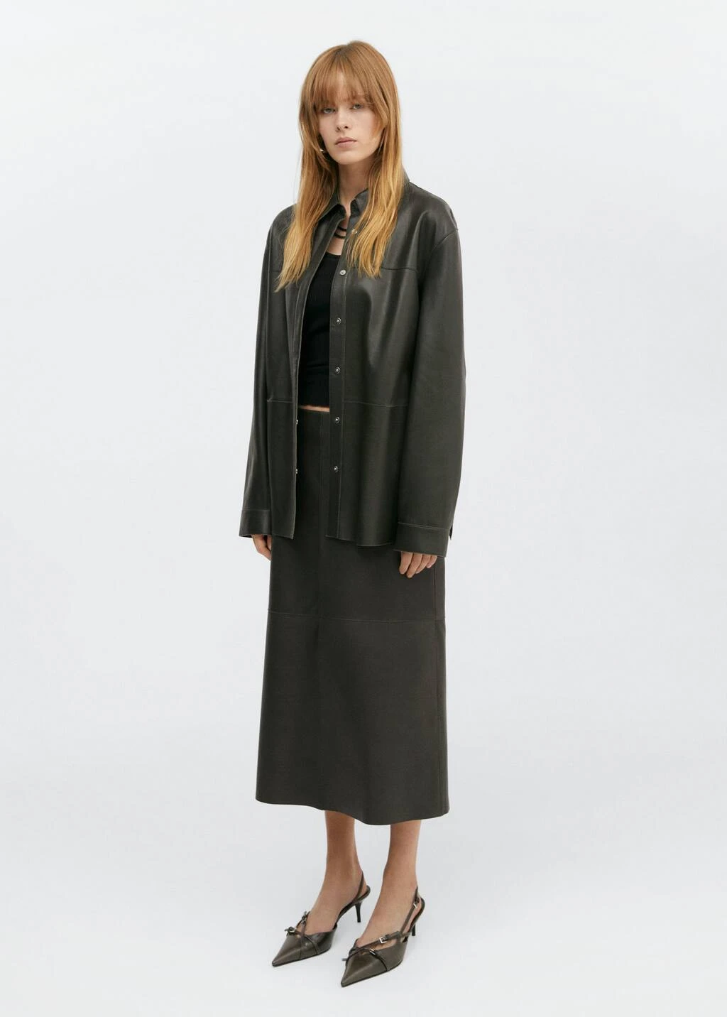 collection selection, 100Â % cuir bovin, droit, manches longues, fermeture a boutons-pression sur le devant, une selection de pieces qui vous accompagneront lors du retour au bureau. confectionnee avec des matieres de qualite pour creer une garde-robe feminine et contemporaine pour votre quotidien.