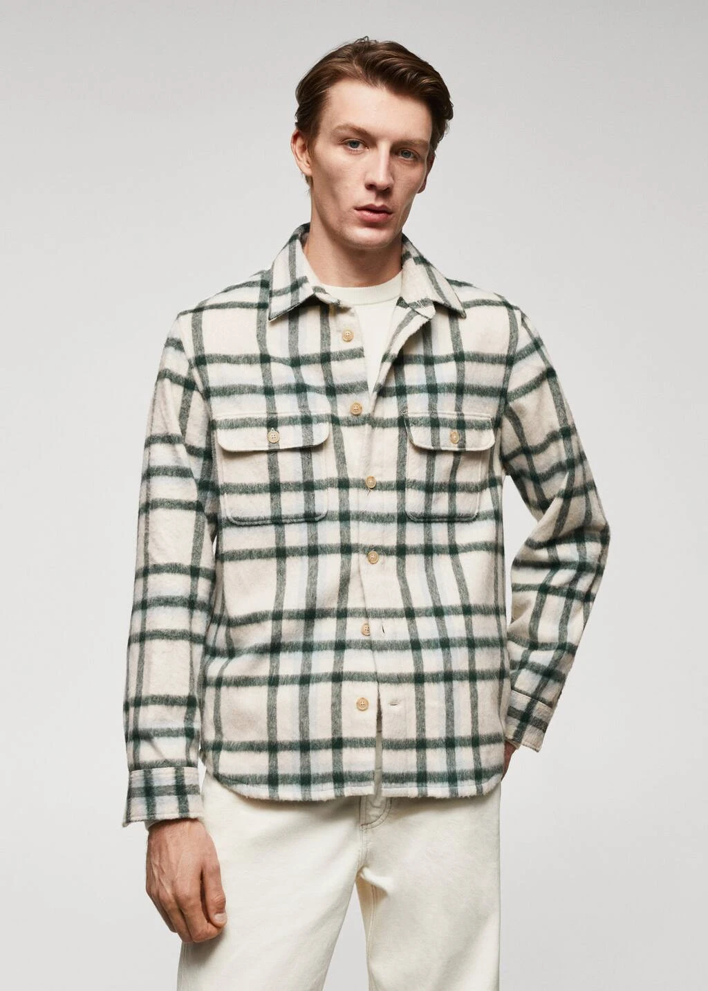 regular-fit, tissu de laine melange, tissu en flanelle, imprime grands carreaux, col classique, deux poches plaquees a rabat sur la poitrine, fermeture a boutons sur le devant, manches longues avec poignets boutonnes, bas arrondiComposition: 37% acrylique,31% laine,28% polyester,3% polyamide,1% coton