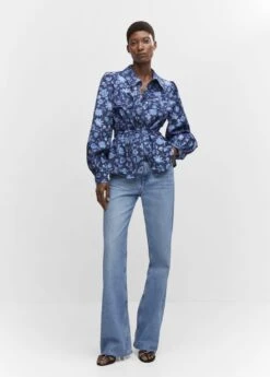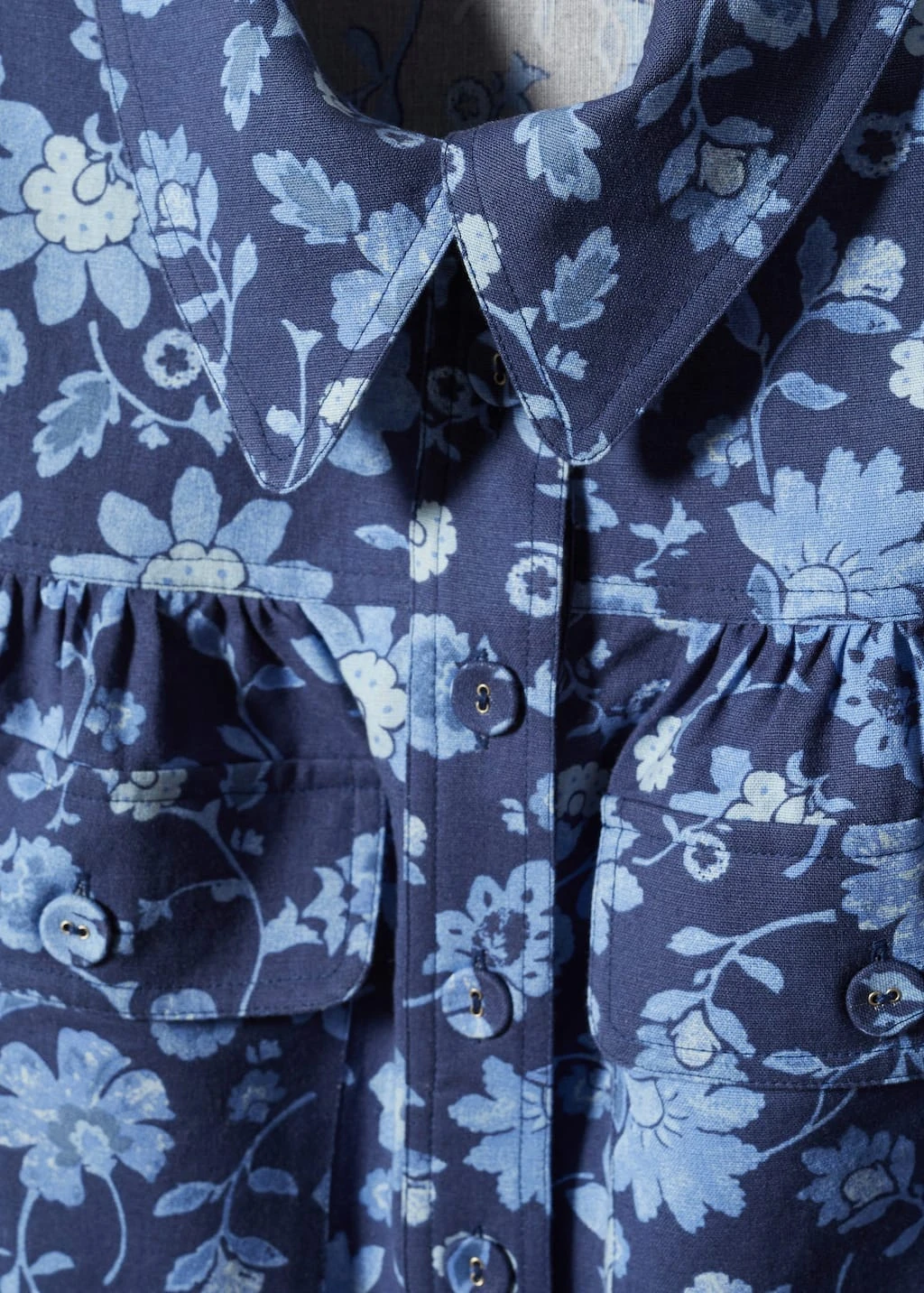 tissu de coton et lin melange, coupe droite, imprime floral, col chemise, manches longues boutonnees, deux poches a rabat sur le devant, fermeture a bouton sur le devant, ceinture amovible a la taille, total lookComposition: 88% coton,12% lin