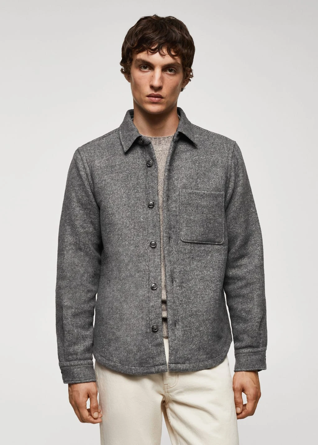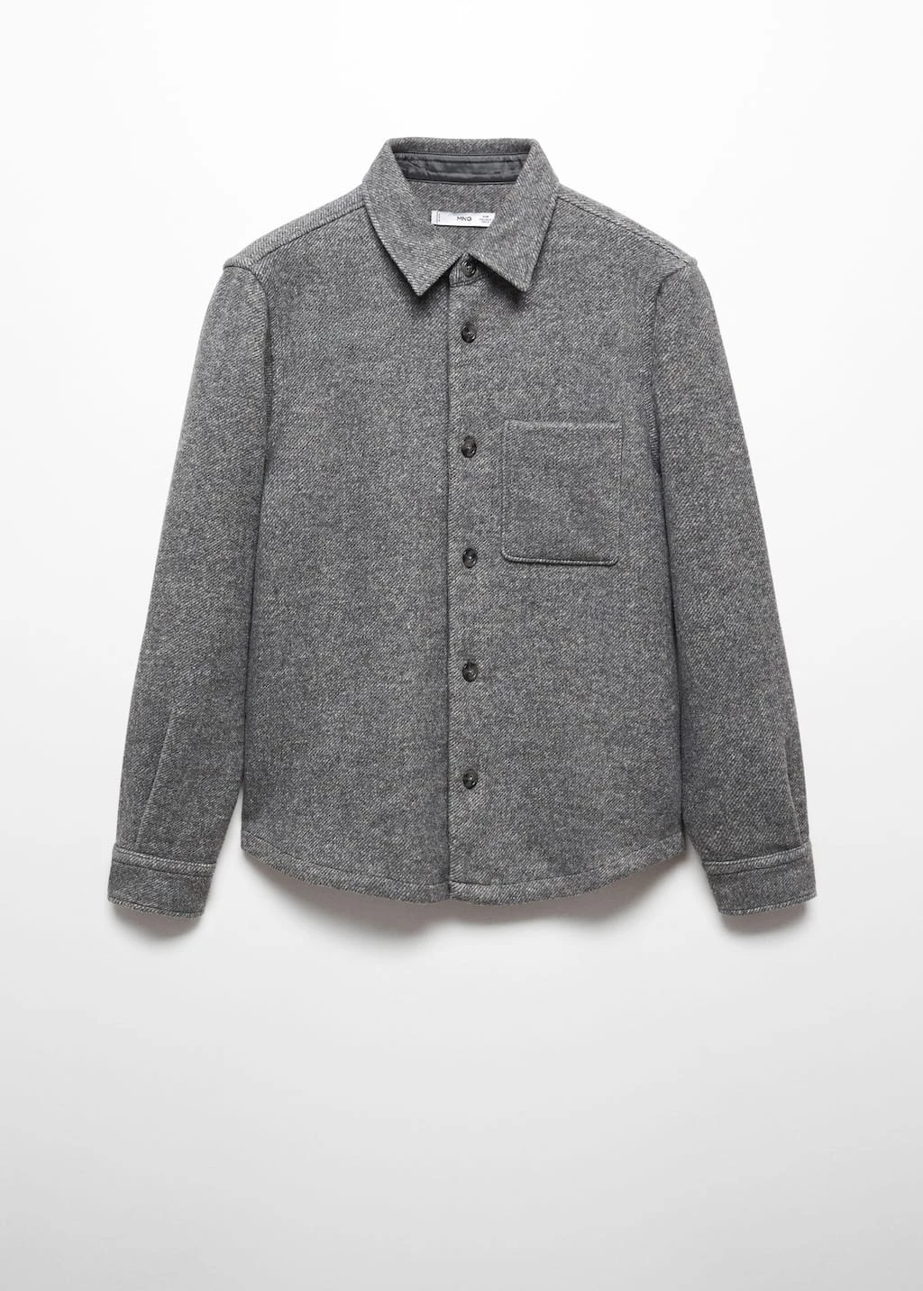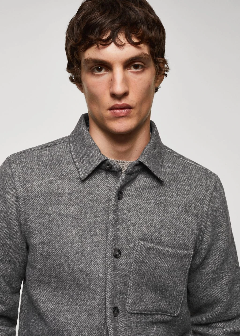 regular-fit, tissu de laine melange, tissu en flanelle, jaspe, col chemise, poche plaquee sur la poitrine, fermeture a boutons sur le devant, manches longues avec poignets boutonnes, bas arrondi, le mannequin mesure 190 cm et porte une taille mComposition: 53% polyester,41% laine,3% viscose,2% acrylique,1% polyamide