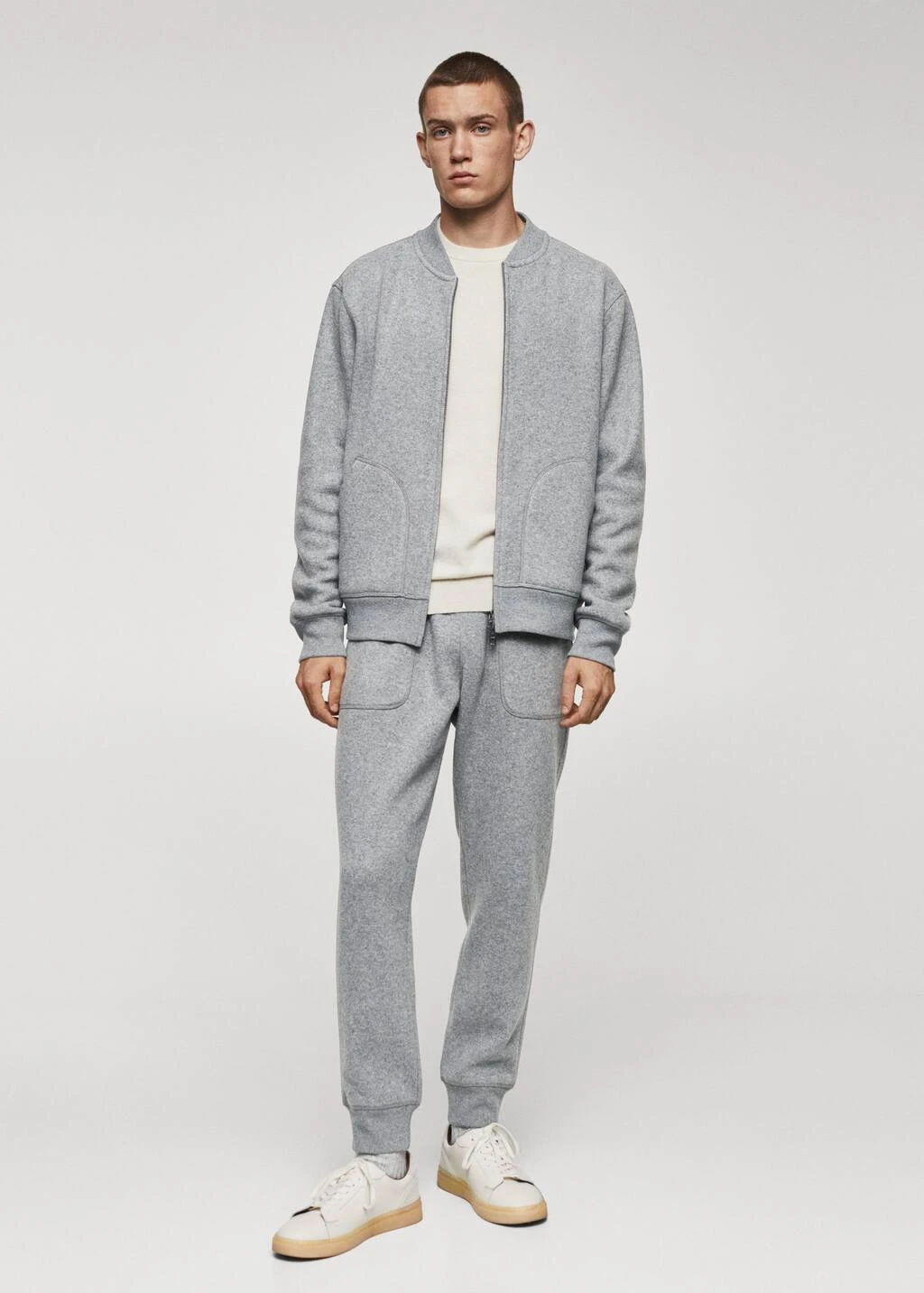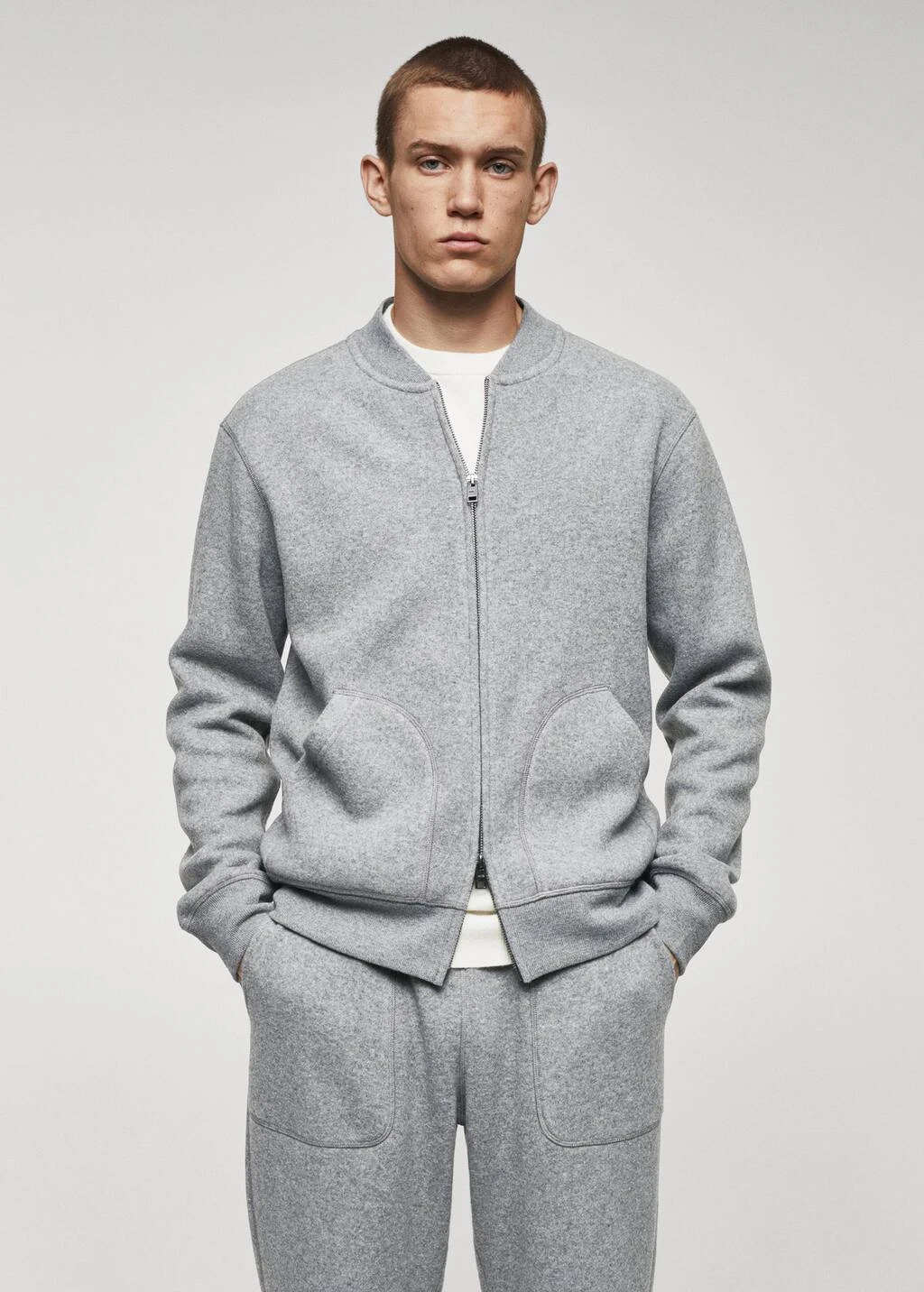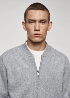 tissu de laine melange, style bomber, regular-fit, jaspe, col bomber en maille cotelee, manches longues avec poignets elastiques, deux poches plaquees sur le devant, fermeture eclair a l’avant, bas droit, le mannequin mesure 190 cm et porte une taille mComposition: 78% polyester,22% laine