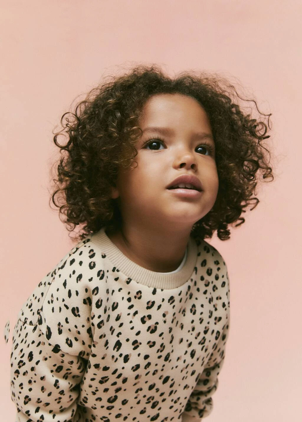 100 % coton, coupe droite, imprime leopard, col rond, manches longues, sans fermeture.Composition: 100% coton