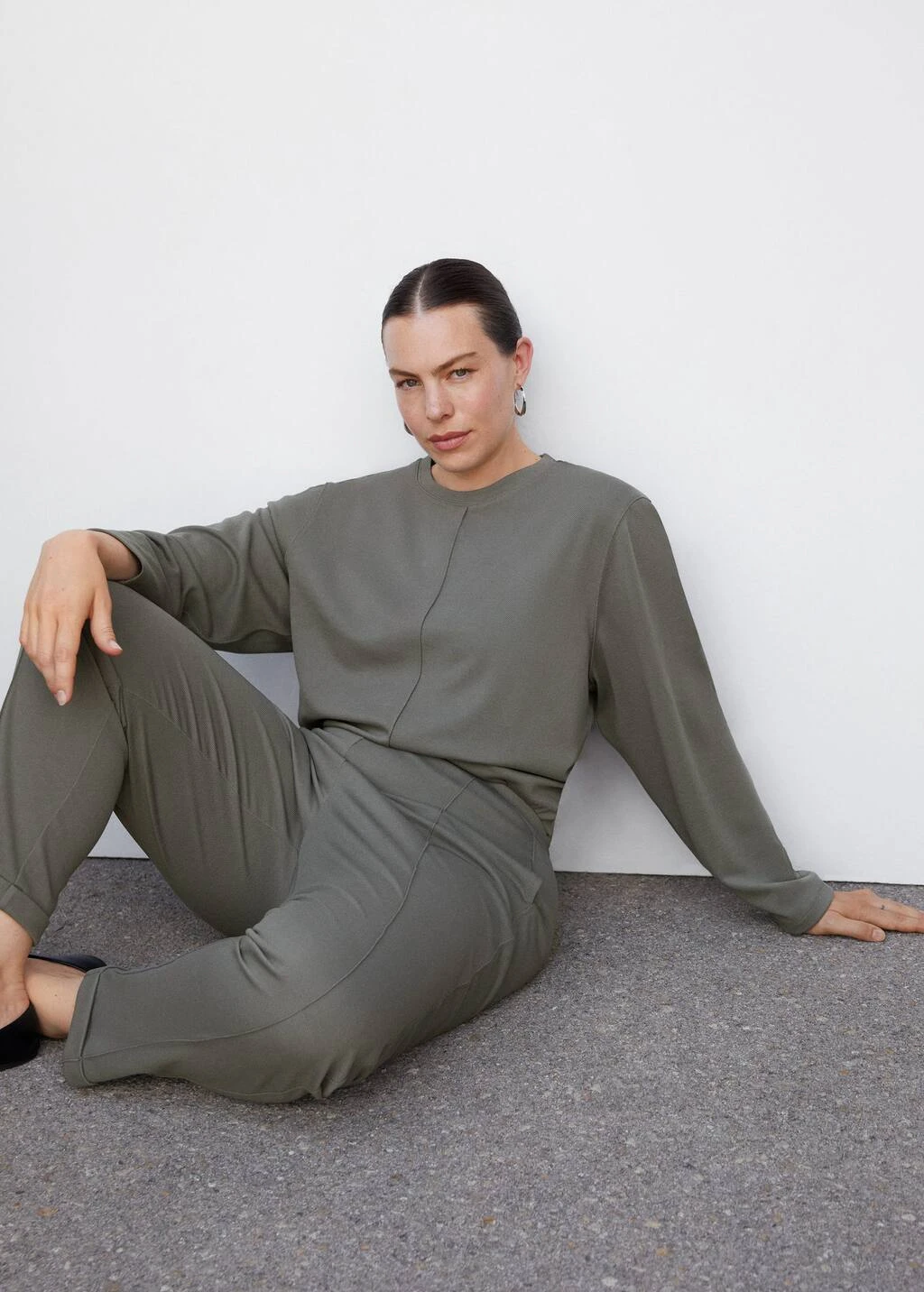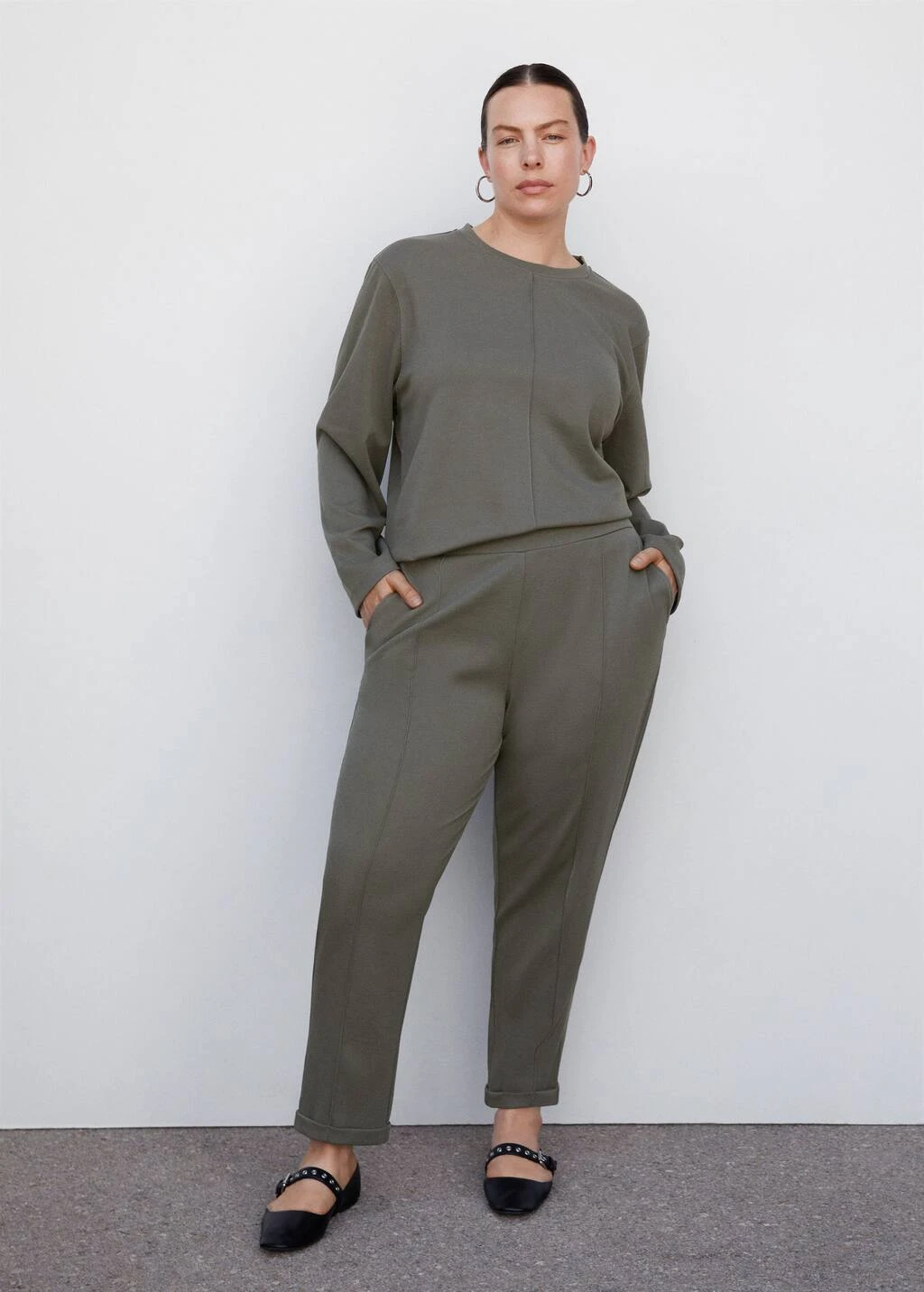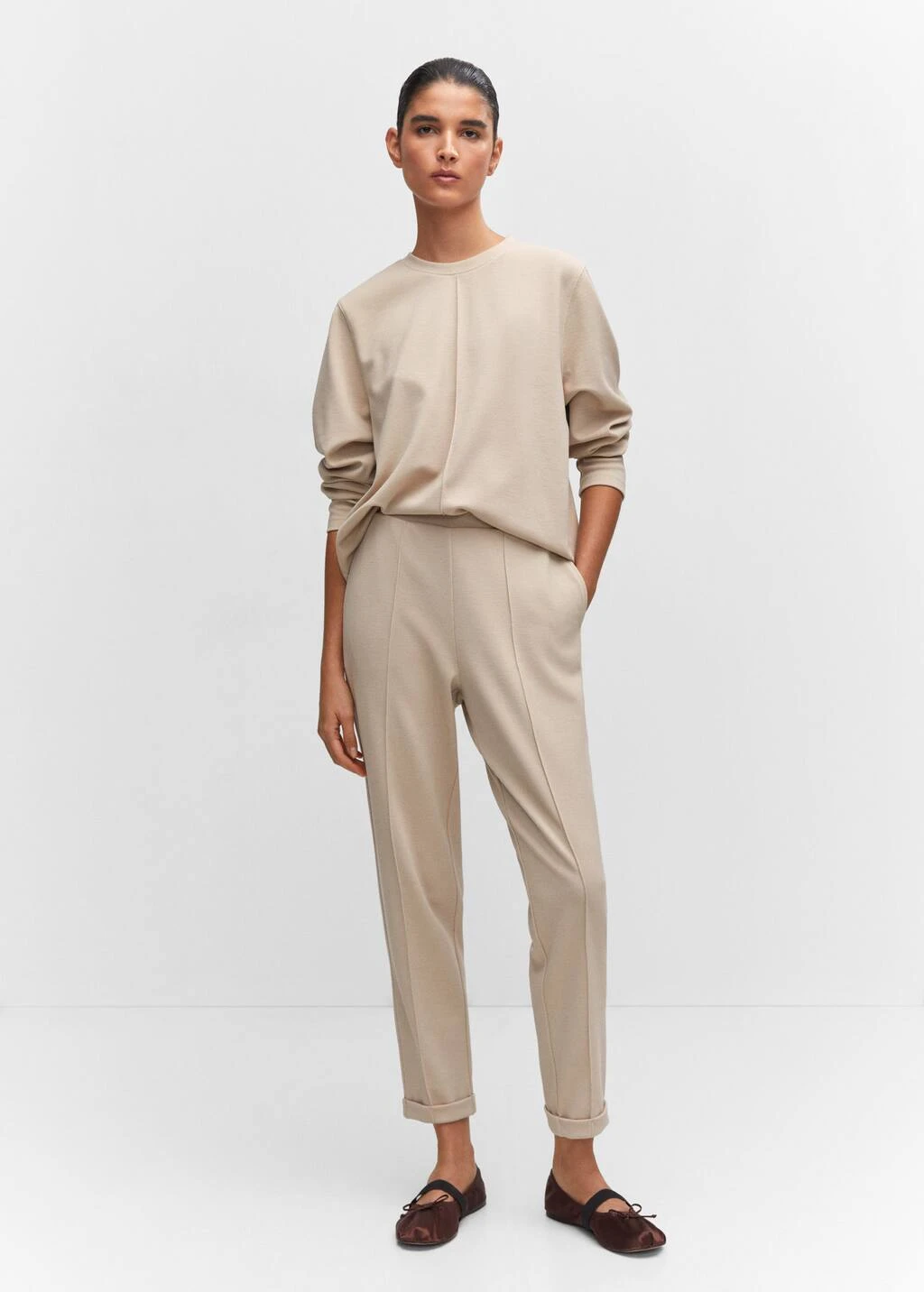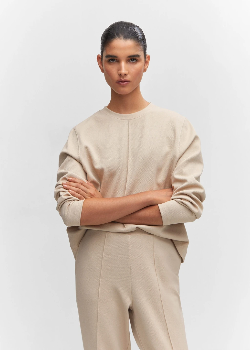 tissu fluide, droit, col rond, manches longues, coutures decoratives, sans fermeture, total lookComposition: 78% polyester,20% viscose,2% elasthanne