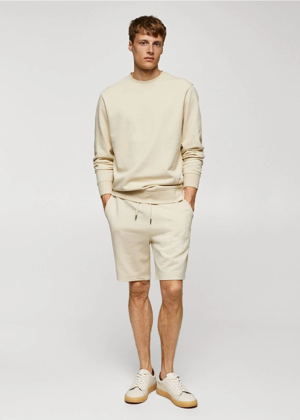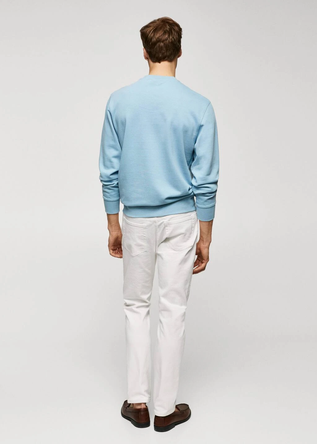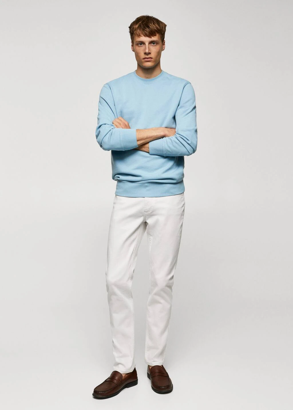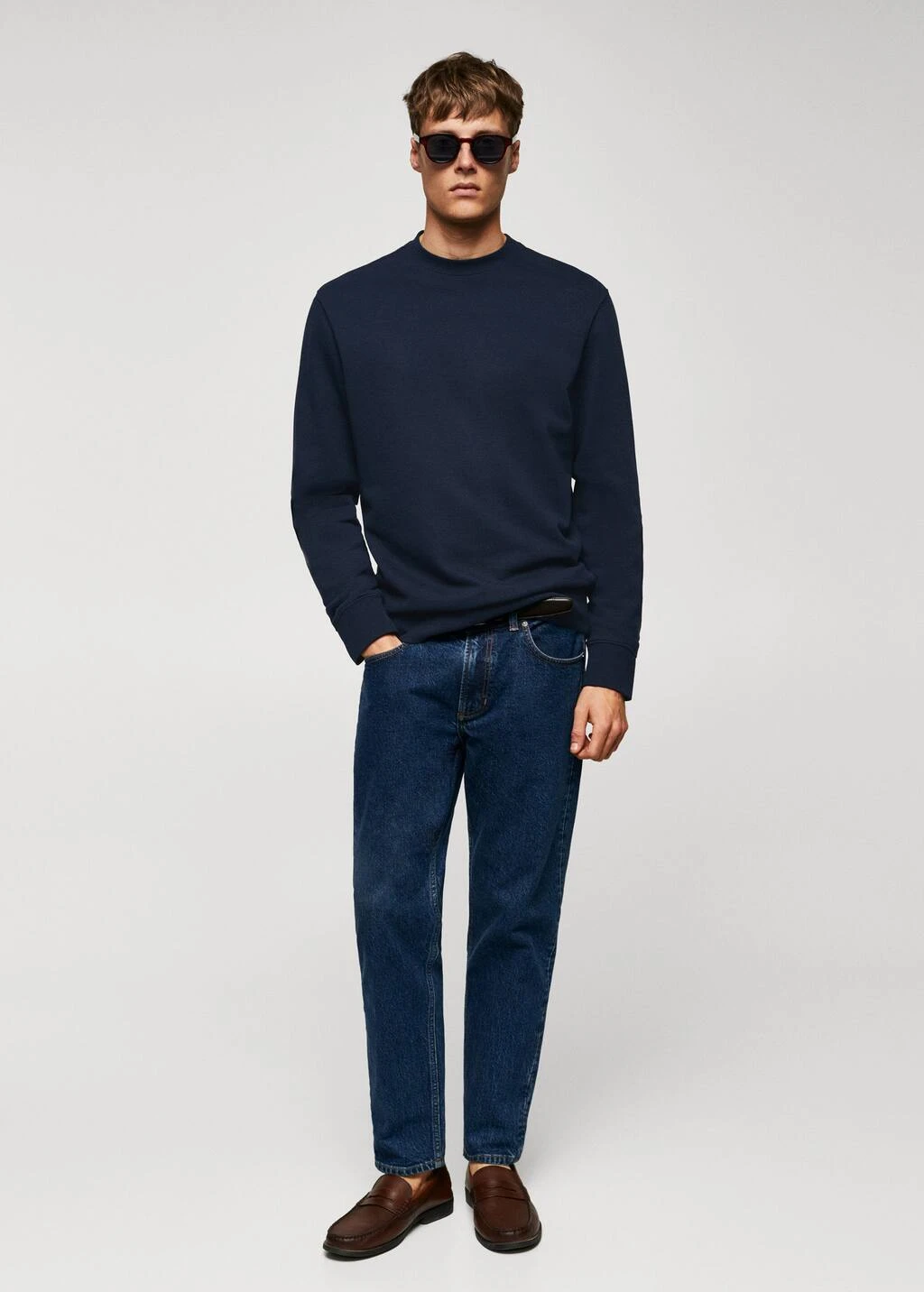 les essentiels : concus pour durer, tissu 100 % coton, tissu en coton durable, regular-fit, col rond, manches longues avec poignets elastiques, manches longues, bords coteles elastiques, bas elastique, le mannequin mesure 183 cm et porte une taille mComposition: 100% coton