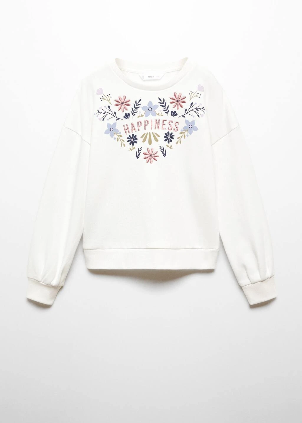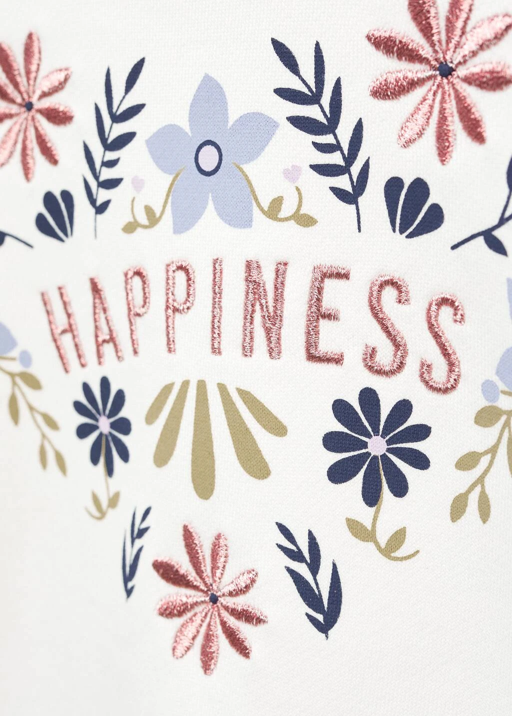 100 % coton, imprime fleurs, coupe droite, message brode, col rond, manches longues, sans fermeture.Composition: 100% coton