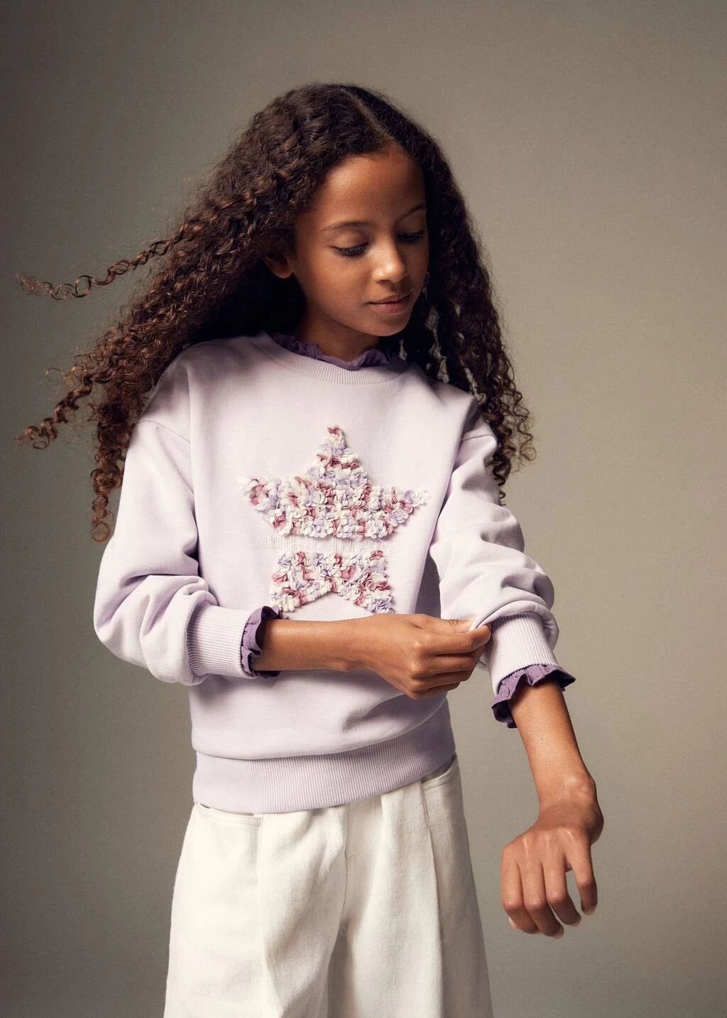 tissu en coton, etoile imprimee, texture, col rond, manches longuesComposition: 85% coton,15% polyester