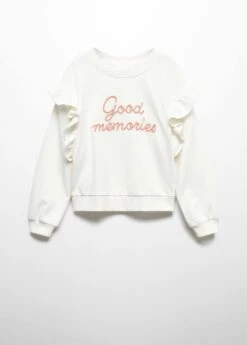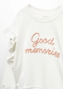 100 % coton, message imprime, details volantes, col rond, manches longues, sans fermetureComposition: 100% coton