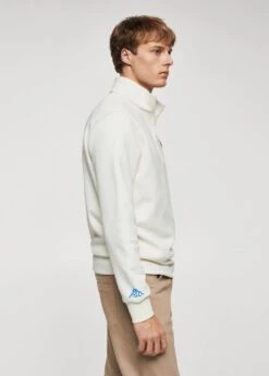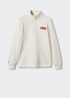 collection capsule dirty x mango, regular-fit, tissu de coton melange, col montant, fermeture eclair au col, manches longues, message en relief texture, bords elastiques, le mannequin mesure 185 cm et porte une taille m, avec ce vetement en coton, vous soutenez notre investissement dans la mission de better cotton. ce tissu est un equilibre de masse qui remplace ou melange du coton better cotton avec du coton conventionnel, aussi il est possible qu’il ne contienne pas de better cotton. les agriculteurs partenaires beneficient d’un soutien et d’une formation continus.COMPOSITION:67% COTON,33% POLYESTER