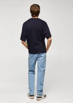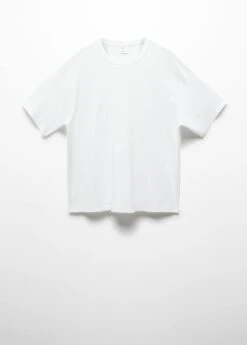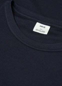 100 % coton, col rond a finition cotelee, manches courtes, bas droit, le mannequin mesure 190 cm et porte une taille mComposition: 100% coton