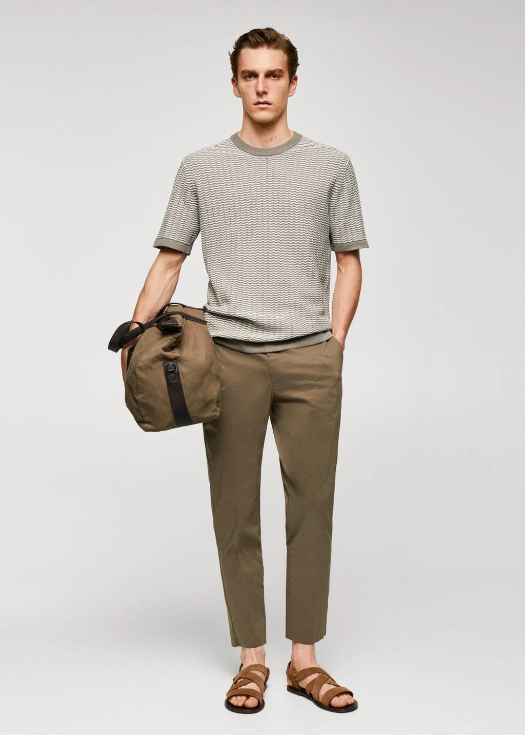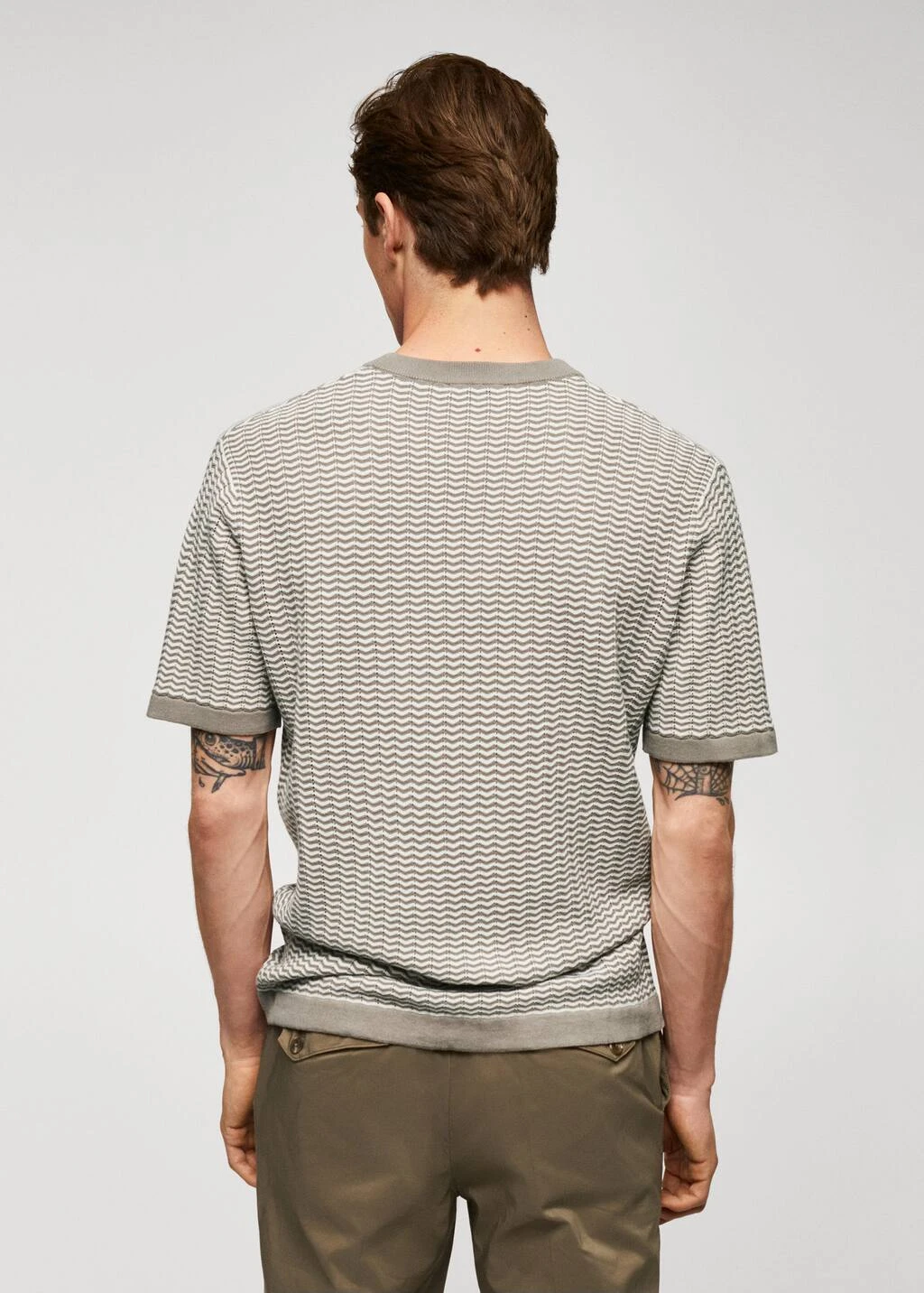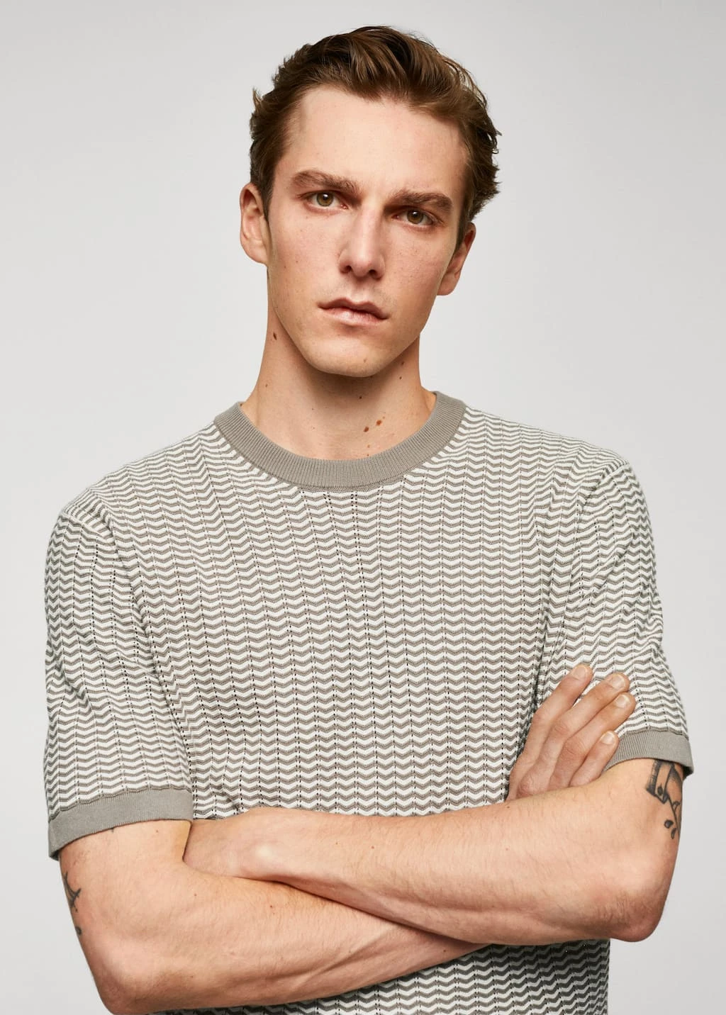 100 % coton, regular-fit, coupe droite, structure en zigzag, tissu en maille fine, col rond, manches courtes, bords elastiques contrastants, le mannequin mesure 190 cm et porte une taille mComposition: 100% coton