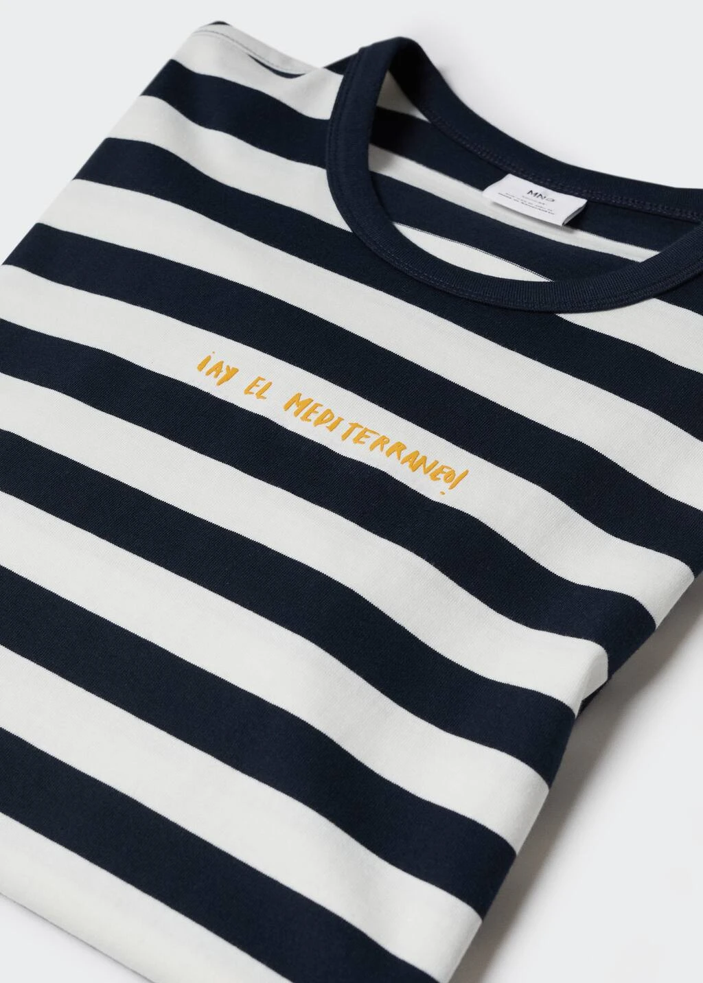 tissu 100 % coton, regular-fit, imprime a rayures horizontales, message imprime en relief sur la poitrine, manches courtes, bas droit, le mannequin mesure 190 cm et porte une taille m, en collaboration avec la photographe et artiste visuelle adriana eskenaziComposition: 100% coton. Cannelé: 95% coton,5% elasthanne