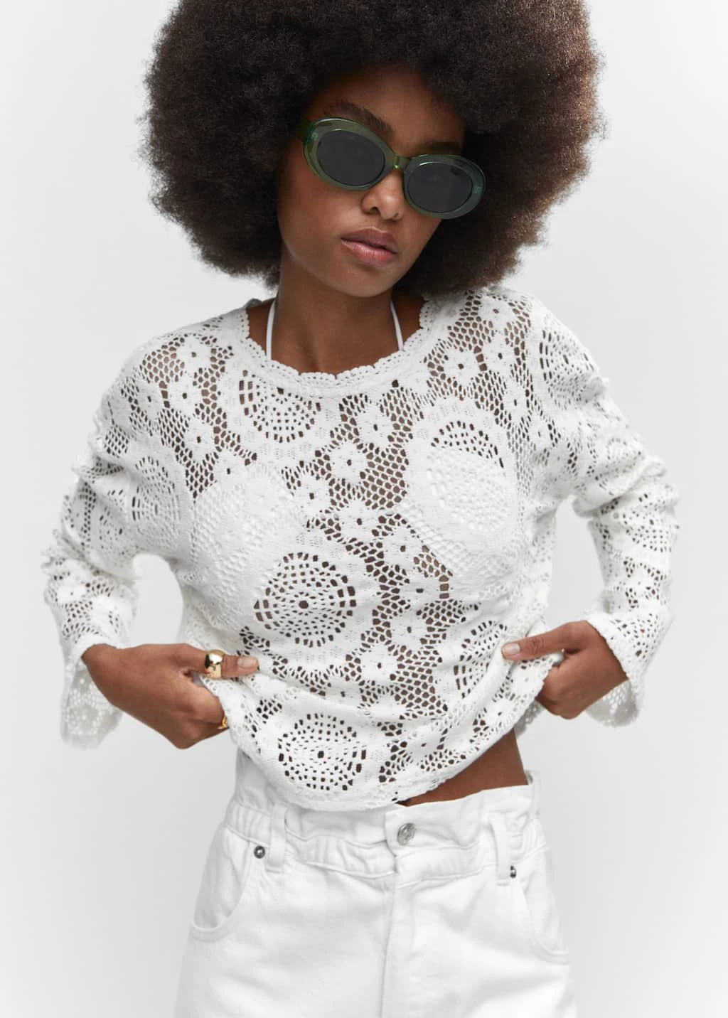 tissu de coton melange, tissu brode, tissu ajoure, coupe droite, col rond, manches longues, sans fermeture, saison des festivalsComposition: 89% coton,11% polyester. Col: 100% coton