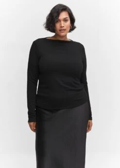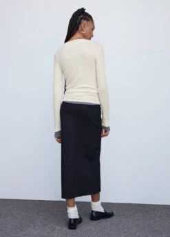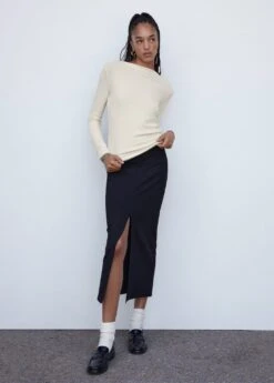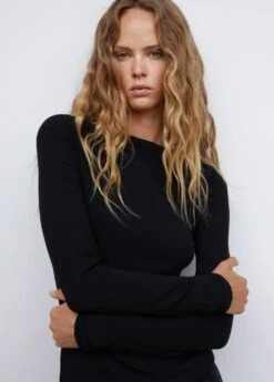 tissu cotele, coupe cintree, coupe longue, col bateau, manches longues, disponible plusComposition: 63% polyester recyclé,33% viscose,4% elasthanne