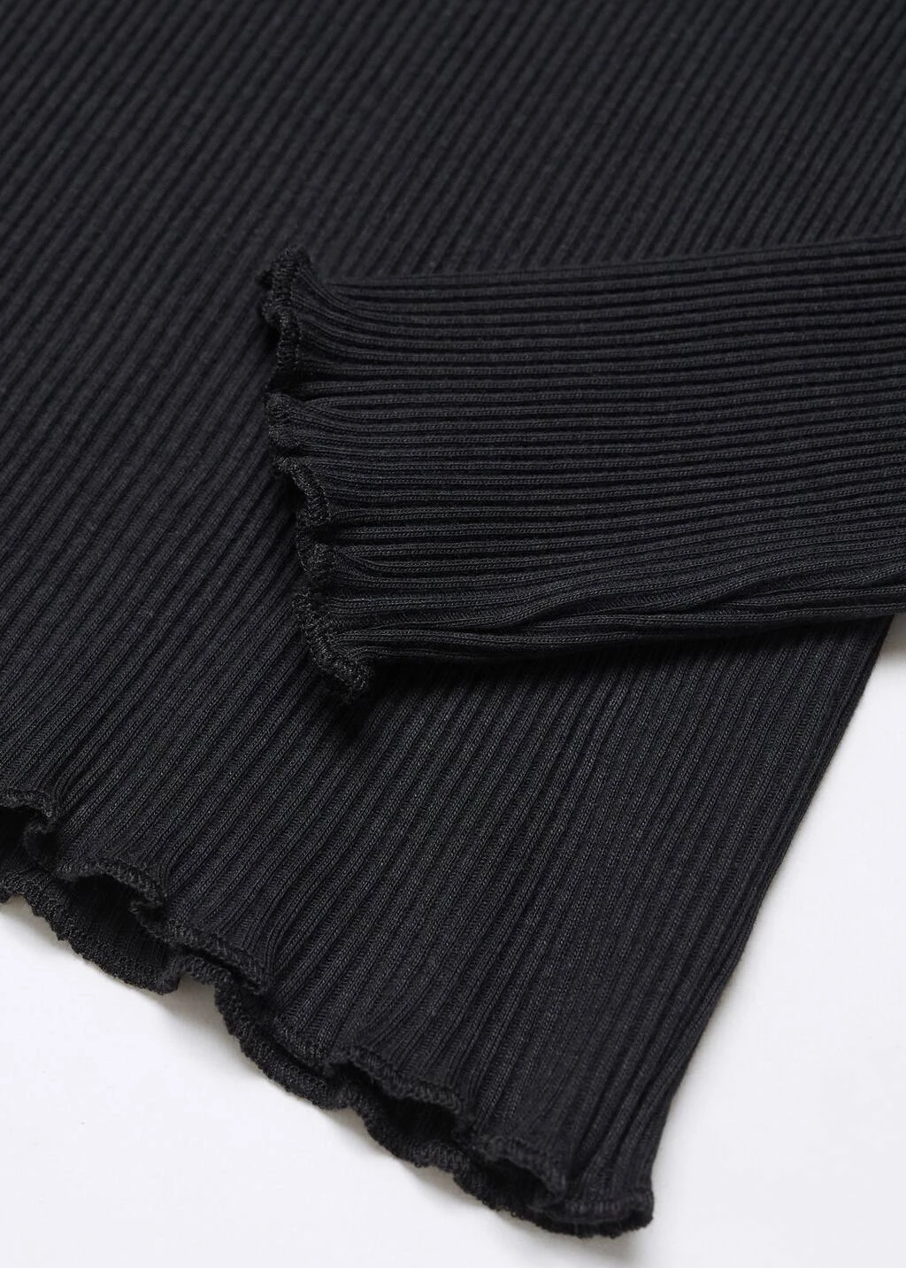 tissu 100 % coton, maille cotelee, slim-fit, col montant, manches longues, bordures festonneesComposition: 100% coton